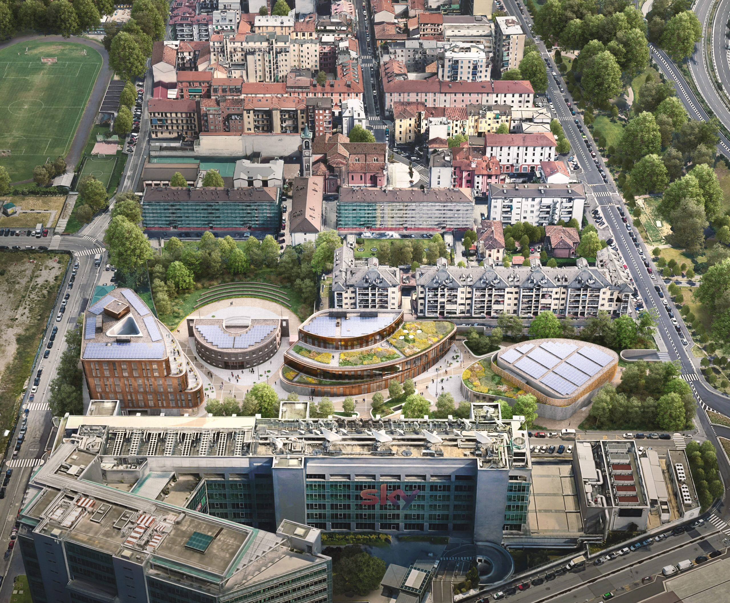 Concepito come campus musicale multifunzionale, l’intervento si inserisce in una più ampia strategia di riqualificazione dell’area. Oltre alla rifunzionalizzazione dello storico edificio Ex Chimici, il progetto prevede la realizzazione di quattro nuovi edifici dedicati alla didattica, alla residenza per studenti e alle attività aperte al pubblico, insieme a un’arena estiva all’aperto destinata ai concerti.
