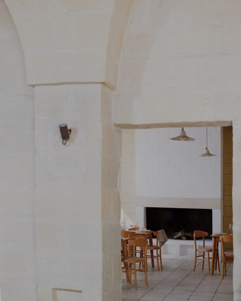 Il progetto di restauro di Masseria Caronte, firmato dallo studio Margine a Vernole, nel Salento, è un lavoro sul tempo prima ancora che sulla forma. Un tempo sedimentato nella pietra leccese, nelle volte, nel recinto che ha custodito per secoli il lavoro e gli animali, e che nel corso degli anni è stato alterato da aggiunte e trasformazioni.