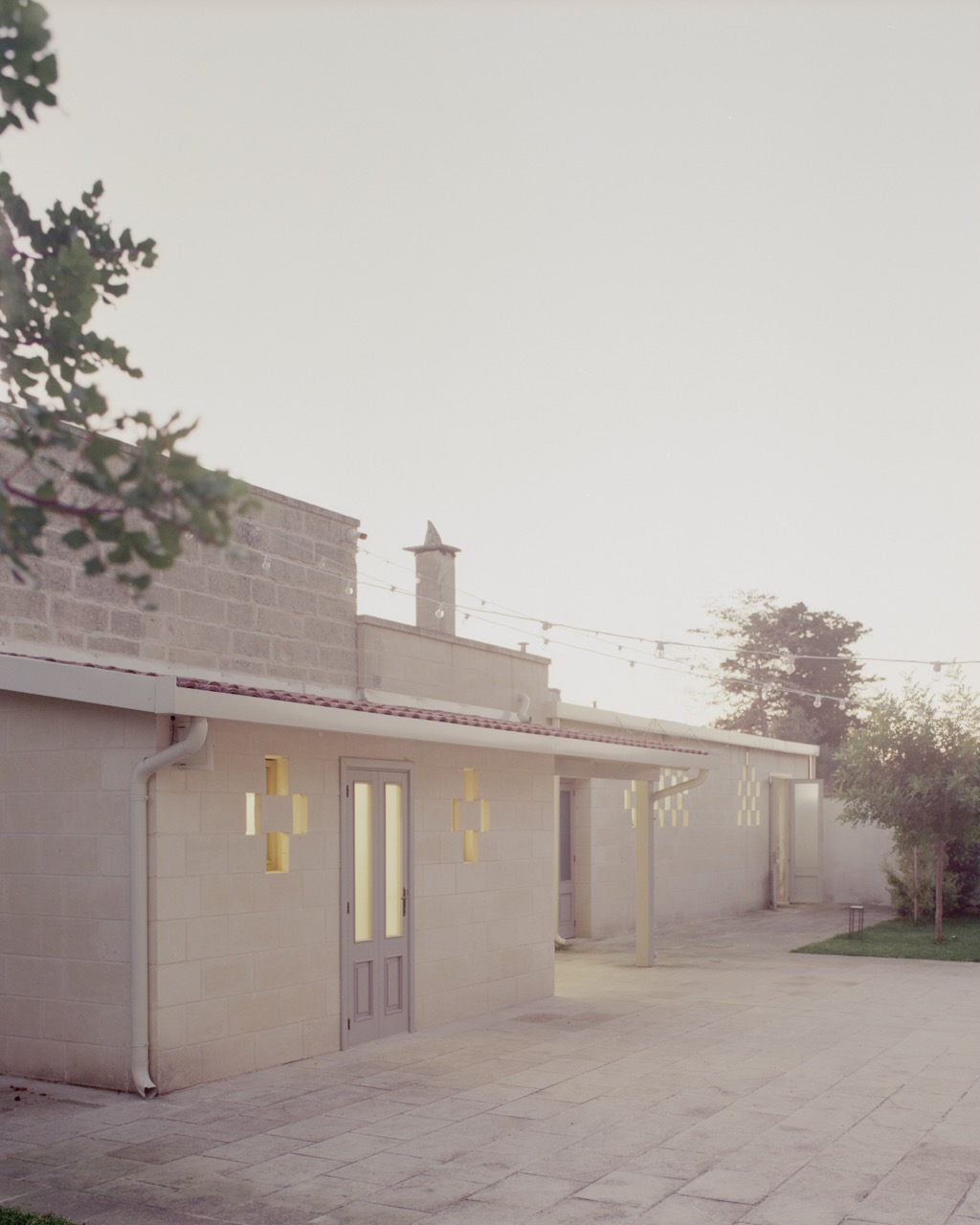 La masseria, storicamente destinata all’allevamento ovino e alla produzione di lana e filati, presenta una struttura originaria riconoscibile in un impianto a corte chiusa. Il nucleo fondativo è definito da un recinto quadrangolare in pietra leccese, alto circa tre metri, concepito come dispositivo di protezione per il bestiame, sul quale si innesta un corpo edilizio voltato articolato in tre ambienti, un tempo utilizzati come opificio e ricovero. L’intervento assume questa stratificazione come materia critica e sceglie di operare per sottrazione, liberando l’architettura dalle sovrascritture per restituire continuità allo spazio, misura alla materia e leggibilità all’impianto originario.