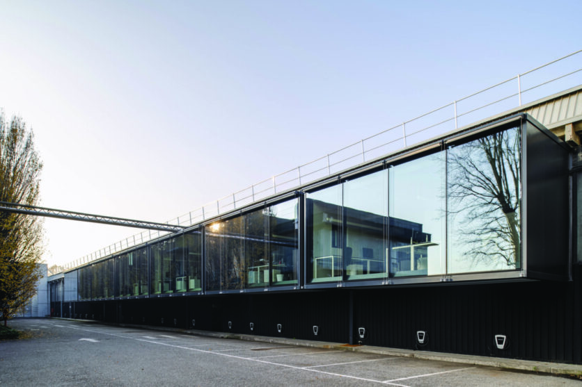 Un equilibrio tra leggerezza strutturale e visione contemporanea del lavoro: i nuovi uffici tecnici di Boffi Spa a Lentate sul Seveso reinterpretano l’idea stessa di spazio produttivo firmato dall’architetto Andrea Gerosa e dall’ingegnere e architetto Franco Gerosa di Studio Gerosa, ridefinisce la fruibilità e il significato degli ambienti aziendali. La committenza richiedeva di ampliare l’edificio esistente senza sottrarre superficie utile al reparto produttivo né occupare le aree esterne destinate ai parcheggi. La risposta progettuale è stata quella di inserire sette volumi sospesi lungo il prospetto sud dell’edificio, in corrispondenza dei vani finestrati.
