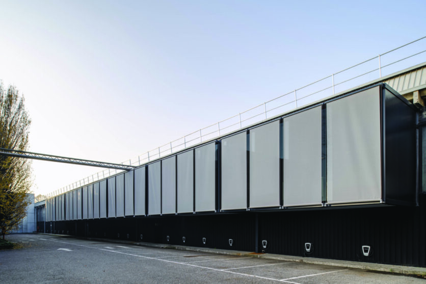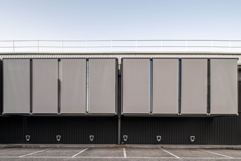 I nuovi corpi sospesi dialogano con la luce naturale grazie a ampie facciate vetrate che migliorano la qualità ambientale interna e riducono i consumi energetici. Le schermature solari motorizzate regolano l’apporto luminoso e termico, garantendo comfort e benessere per chi lavora all’interno.