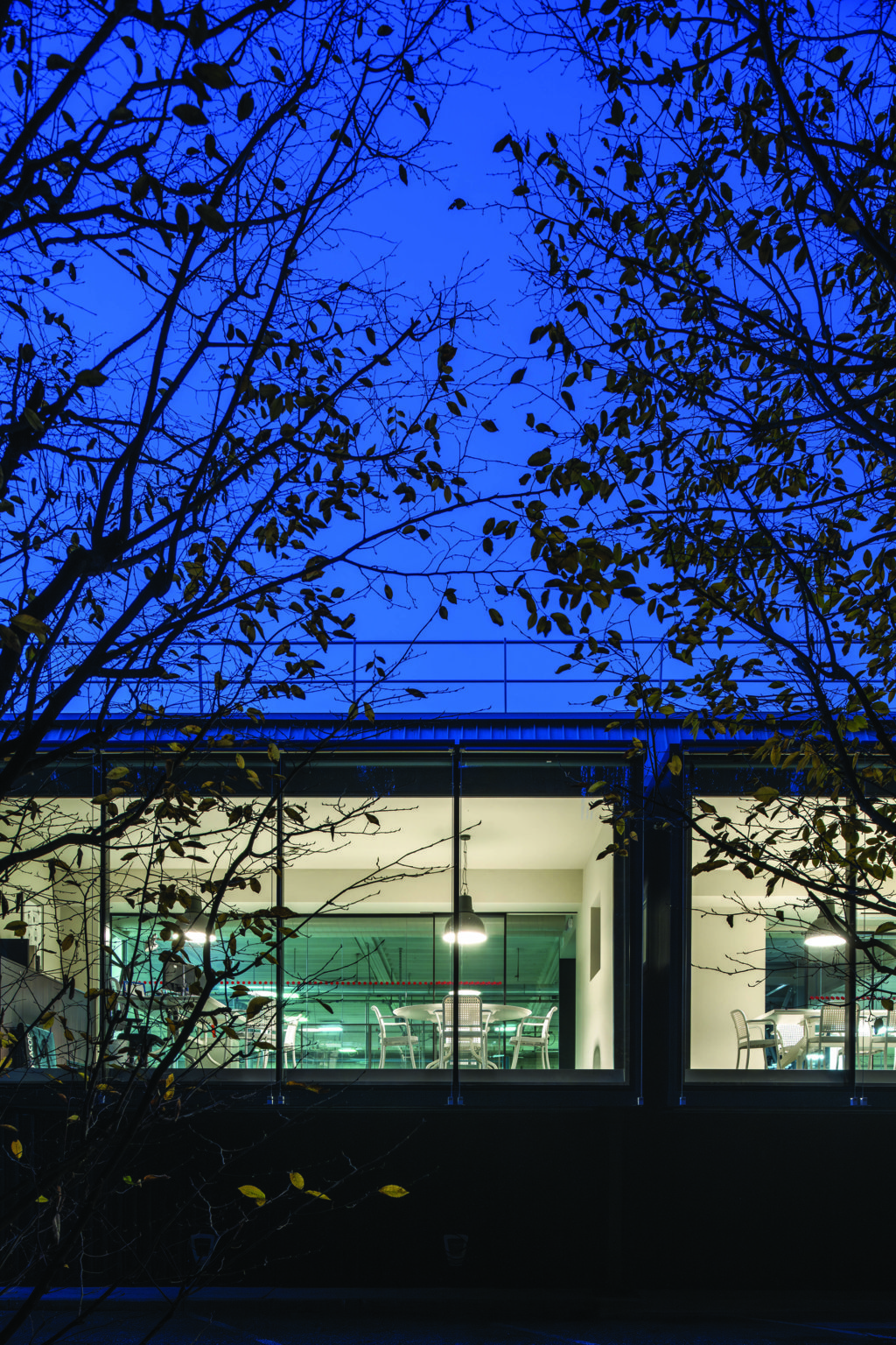 I nuovi corpi sospesi dialogano con la luce naturale grazie a ampie facciate vetrate che migliorano la qualità ambientale interna e riducono i consumi energetici. Le schermature solari motorizzate regolano l’apporto luminoso e termico, garantendo comfort e benessere per chi lavora all’interno.