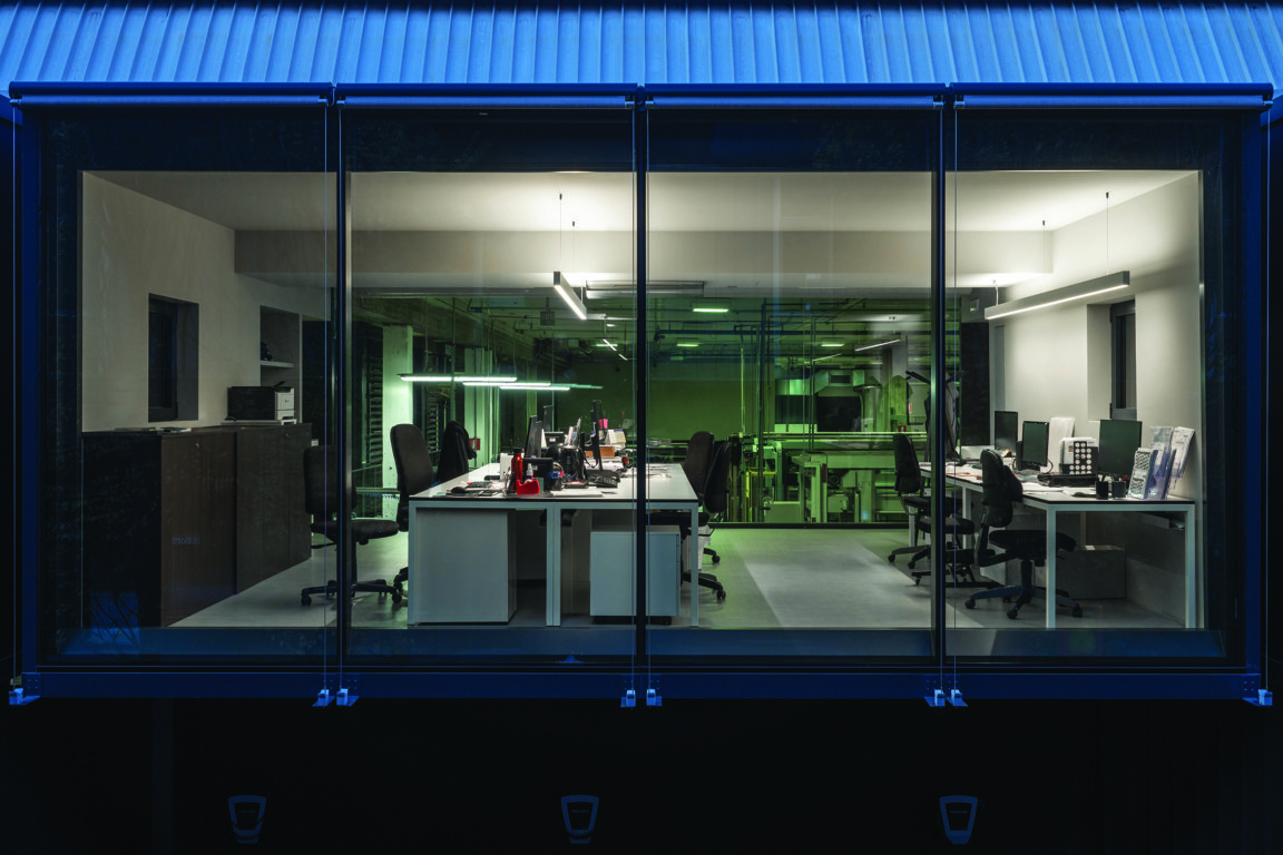 Dal punto di vista tecnico, la struttura in acciaio prefabbricato e montata a secco ha permesso un’esecuzione rapida, senza interferire con le attività produttive in corso. Pavimenti e coperture in lamiera grecata coibentata, tamponamenti in pannelli isolanti e finiture interne in cartongesso assicurano prestazioni termiche e acustiche di alto livello.