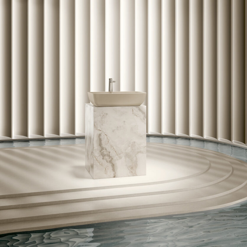 La collezione Artis non si limita ad ampliare la gamma cromatica, ma sperimenta anche con nuove soluzioni formali. Per la prima volta, accanto alla tradizionale versione bicolore, arriva un lavabo da appoggio in tinta unita, pensato per intensificare l’effetto visivo e creare ambienti coerenti e armonici. Realizzati in TitanCeram, un materiale che unisce resistenza e raffinatezza, i lavabi sono proposti in quattro forme – rotonda, ovale, quadrata e rettangolare – e si integrano perfettamente con i mobili delle linee Finion e Antao. Per i bagni di dimensioni ridotte, la serie Guest offre versioni compatte dal design curato, ideali per gli spazi dedicati agli ospiti.