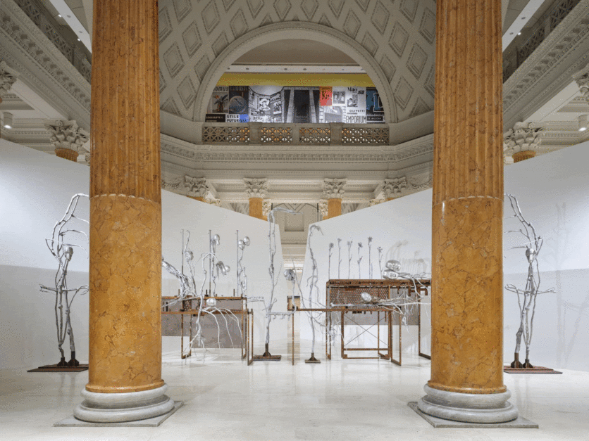La mostra “Fantastica”, ideata a partire da un’intuizione di Luca Beatrice, presidente della Quadriennale scomparso nel gennaio 2025, riunisce 54 artisti e 187 opere su oltre 2.000mq espositivi, in un racconto corale che attraversa cinque capitoli curati da Luca Massimo Barbero, Francesco Bonami, Emanuela Mazzonis di Pralafera, Francesco Stocchi e Alessandra Troncone. Nella rotonda centrale, la sezione curata da Bonami dialoga con le sale laterali, instaurando un gioco visivo e spaziale che amplifica la percezione del luogo e la continuità del racconto espositivo. L’intervento modula le rigidità distributive originarie del disegno neoclassico di Pio Piacentini, reinterpretandole in chiave contemporanea.
