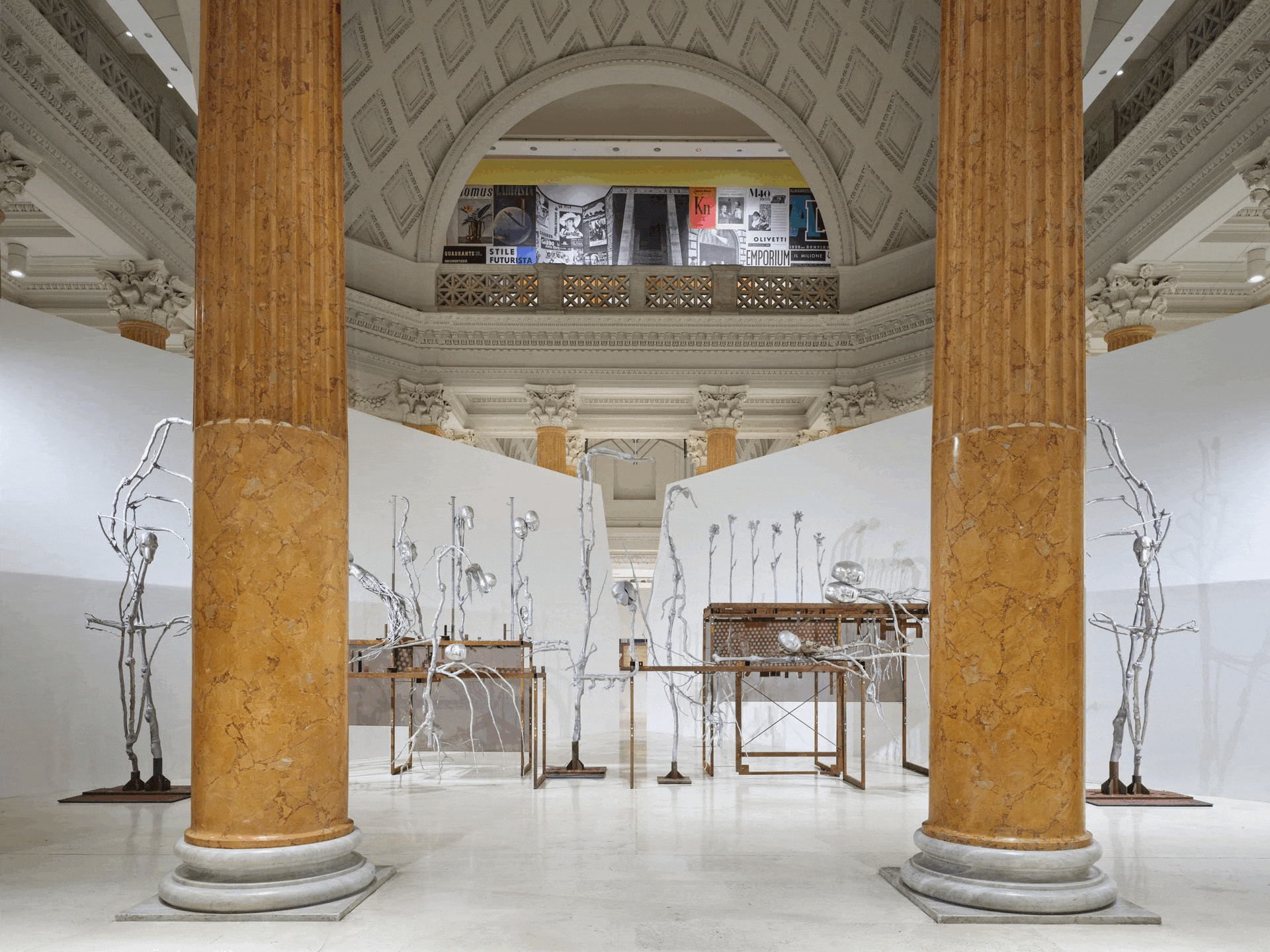 Negli spazi del secondo livello del Palazzo delle Esposizioni, BRH+ adotta un registro più lineare ed estroverso, ispirato ai colori e alle atmosfere dell’edizione originaria. Il percorso si articola come una sequenza progressiva di sale dedicate a dipinti, sculture e documenti d’archivio provenienti dalla Biblioteca e Archivio della Quadriennale, accompagnati da un fregio fotografico di grande formato che amplifica la dimensione iconografica.