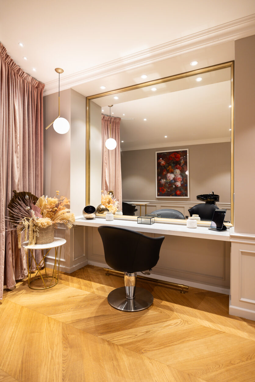 Le suite sono articolate in tre aree principali, zona notte, living e dining, e si distinguono per un design capace di integrare le funzioni mediche in modo discreto. Le testate dei letti, ad esempio, celano le apparecchiature tecniche e le prese di ossigeno dietro pannelli lignei di grande raffinatezza. La selezione dei materiali, che spazia dal parquet in rovere a spina ungherese ai piani in marmo pregiato, coniuga qualità estetica e praticità, rispondendo alle esigenze di igiene e manutenzione quotidiana.