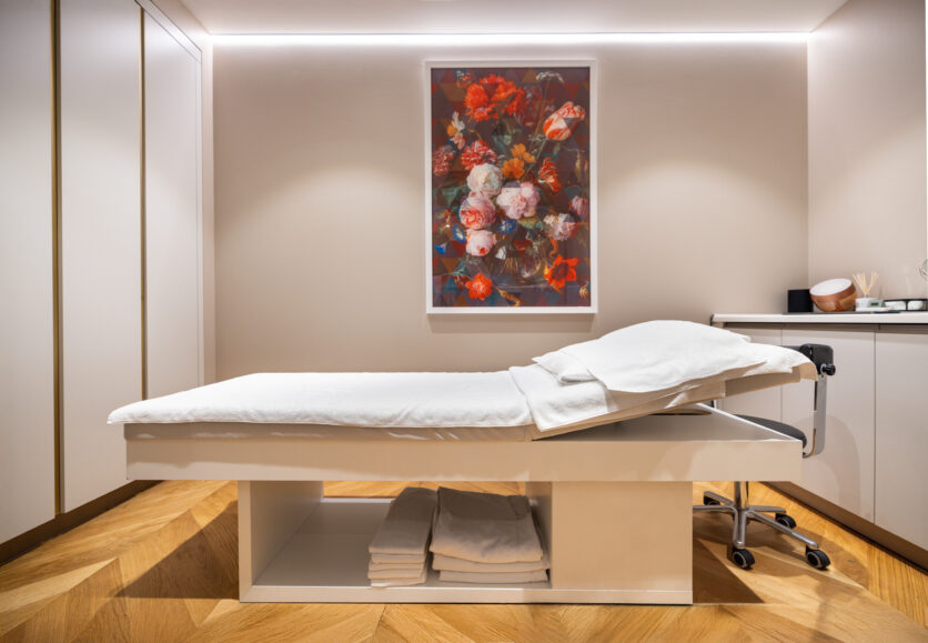Fulcro del progetto sono le suite, distribuite su una superficie complessiva di 1.000 metri quadrati. Qui, Gascón Group ha adottato un innovativo schema “a grappolo”, basato su moduli interconnessi che consentono di modulare gli ambienti in funzione delle esigenze di pazienti e accompagnatori. Questa soluzione permette di ottenere spazi altamente personalizzati, garantendo al contempo la massima privacy, con ambienti che possono estendersi fino a 300 metri quadrati.