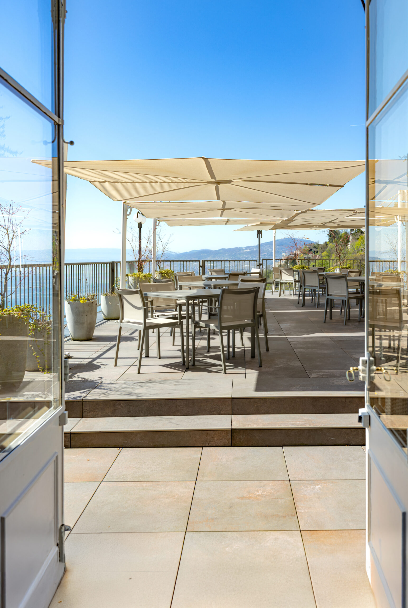 Il progetto ha coinvolto anche gli spazi comuni e le aree di servizio. La cucina, completamente ripensata su due livelli, è stata trasformata in un centro di formazione per gli chef del Gruppo Swiss Medical Network, migliorando al contempo l’organizzazione dei flussi operativi. Il ristorante si caratterizza per una boiserie contemporanea con intarsi verticali e un elegante bancone in marmo bianco, dando vita a un ambiente raccolto che dialoga con il paesaggio lacustre.