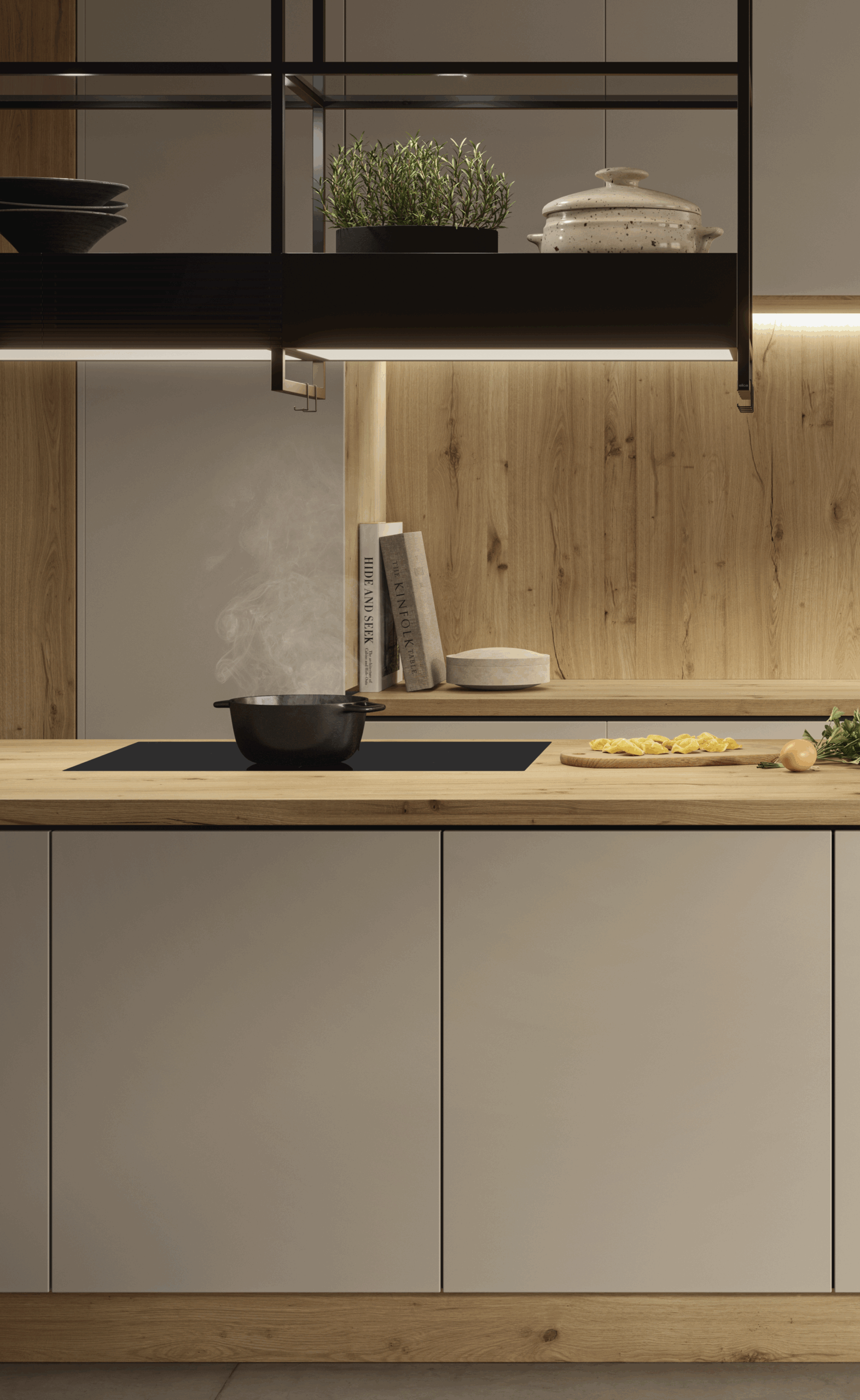 Connex was created with the aim of building a domestic ecosystem in which the hob and hood communicate with each other and with the user, anticipating needs and automating functions that until a few years ago required manual intervention. The project is based on two technological infrastructures: on the one hand, Multi Connection, which allows the induction hob to communicate via Bluetooth with the hood, automatically adjusting the extraction and lighting according to the cooking process; on the other hand, Connectivity, which uses Wi-Fi and the Elica app to extend remote control, from device activation to lighting management, filter monitoring and real-time assistance. The kitchen thus becomes a smart environment that interprets user behaviour and provides the feeling of immediate and intuitive control of the space.