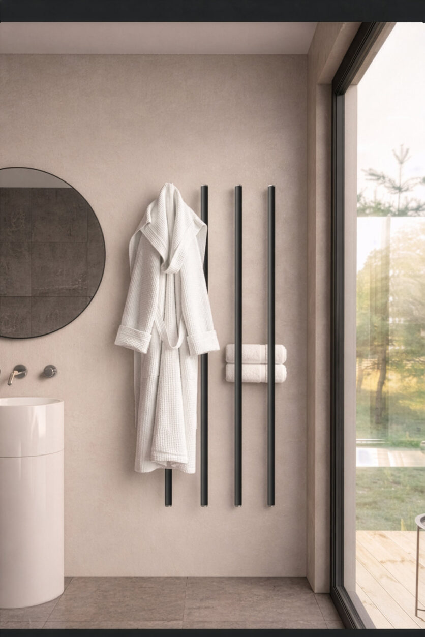 With Stick, Deltacalor introduces an object that transcends the traditional function of a radiator to become a fully-fledged architectural element. Minimalist, slender and vertical, it stands out for its discreet yet striking presence, capable of redefining the bathroom environment through a rigorous formal language.