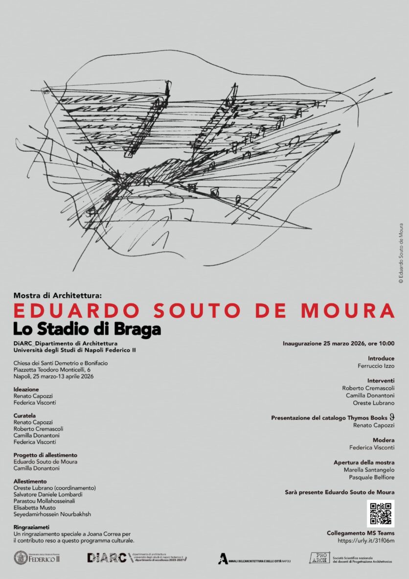 La mostra “Eduardo Souto de Moura – Estádio de Braga”, a cura di Renato Capozzi e Federica Visconti con Roberto Cremascoli e Camilla Donantoni come guest curator, verrà ospitata nella Chiesa di SS. Demetrio e Bonifacio dal 25 marzo al 13 aprile 2026.