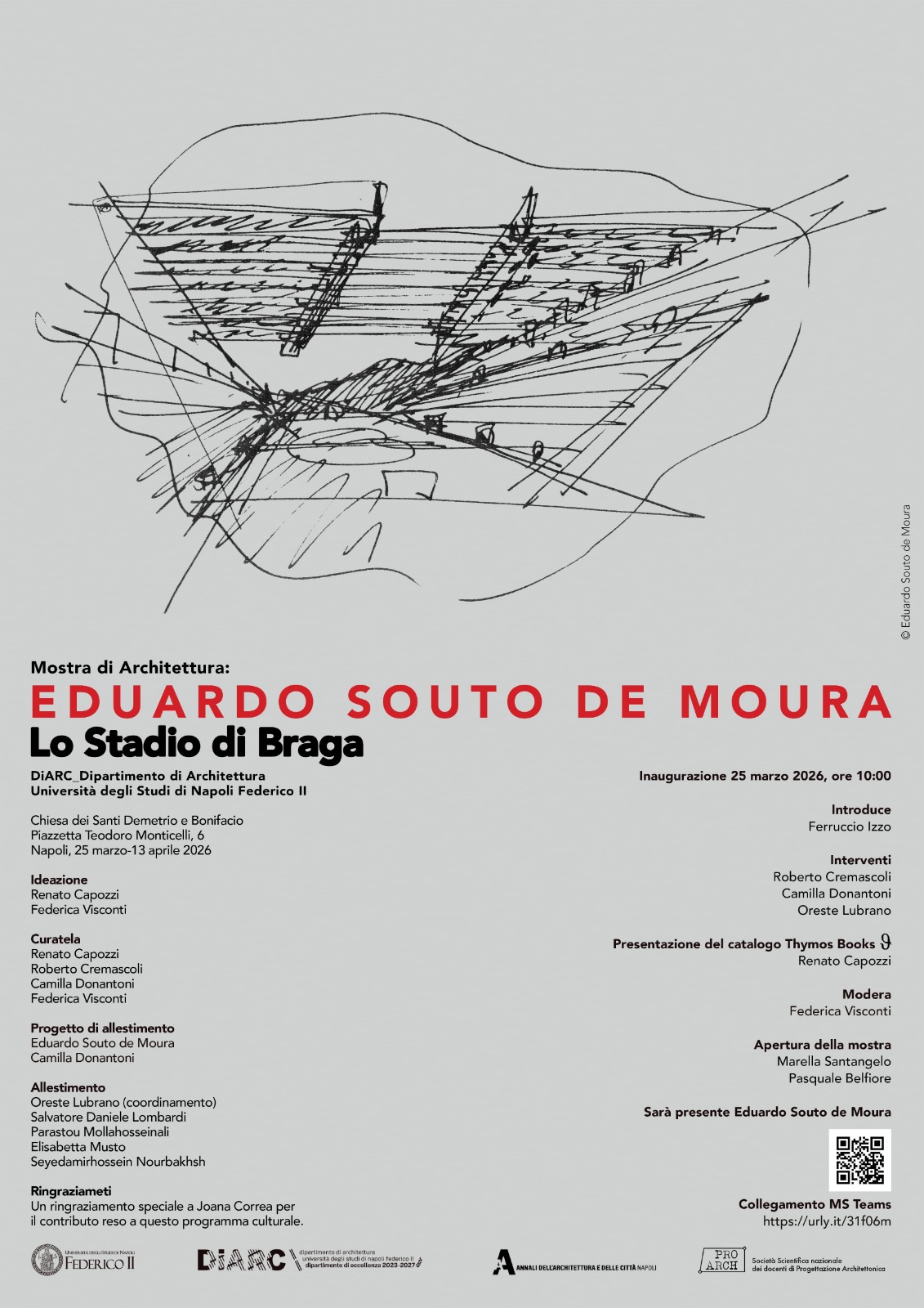 La mostra “Eduardo Souto de Moura – Estádio de Braga”, a cura di Renato Capozzi e Federica Visconti con Roberto Cremascoli e Camilla Donantoni come guest curator, verrà ospitata nella Chiesa di SS. Demetrio e Bonifacio dal 25 marzo al 13 aprile 2026.