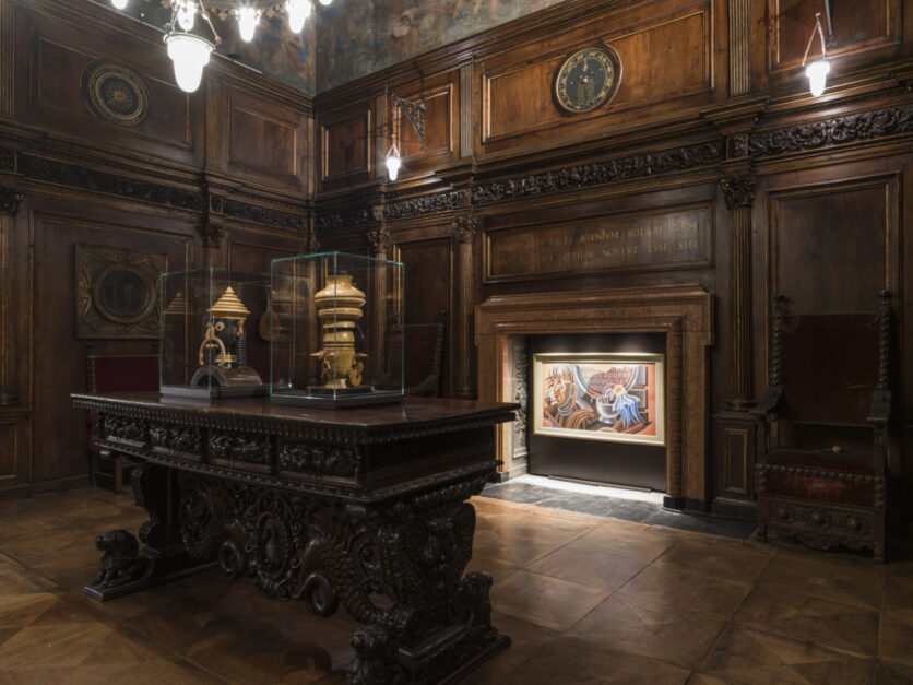 Nelle sale del Museo Bagatti Valsecchi, dove pannelli in legno intagliato e arredi rinascimentali un tempo mettevano in scena una fantasia colta del passato italiano, una presenza audace abita ora questa magnifica atmosfera. Con Depero Spazio a Spazio. La creazione della memoria, la casa museo milanese diventa teatro di un incontro sorprendente e magico tra Novecento e Ottocento, l’immaginazione irrequieta dell’artista futurista Fortunato Depero, il cui lavoro è in perpetuo equilibrio tra visioni arcaiche e progressiste, e i baroni Fausto e Giuseppe Bagatti Valsecchi, visionari e appassionati collezionisti di arte neorinascimentale.
