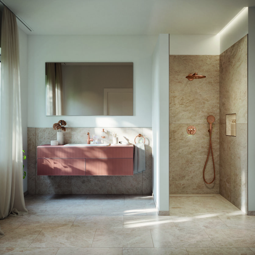 According to Patrick Speck, Leader, LIXIL Global Design, Europe & Americas, the bathroom of 2026 will be driven by three main trends interpreted by the GROHE Colors collection: metallic accents, connection with nature and multisensory design. Metallic shades such as gold, bronze and anthracite grey interact with warm materials such as wood and fine surfaces such as marble, finding iconic expression in GROHE Essence fittings, combined with SmartControl showers and Essentials accessories, which combine functionality and style. The relationship with nature inspires environments designed as regenerating retreats, characterised by soft shapes, delicate textures and warm palettes.