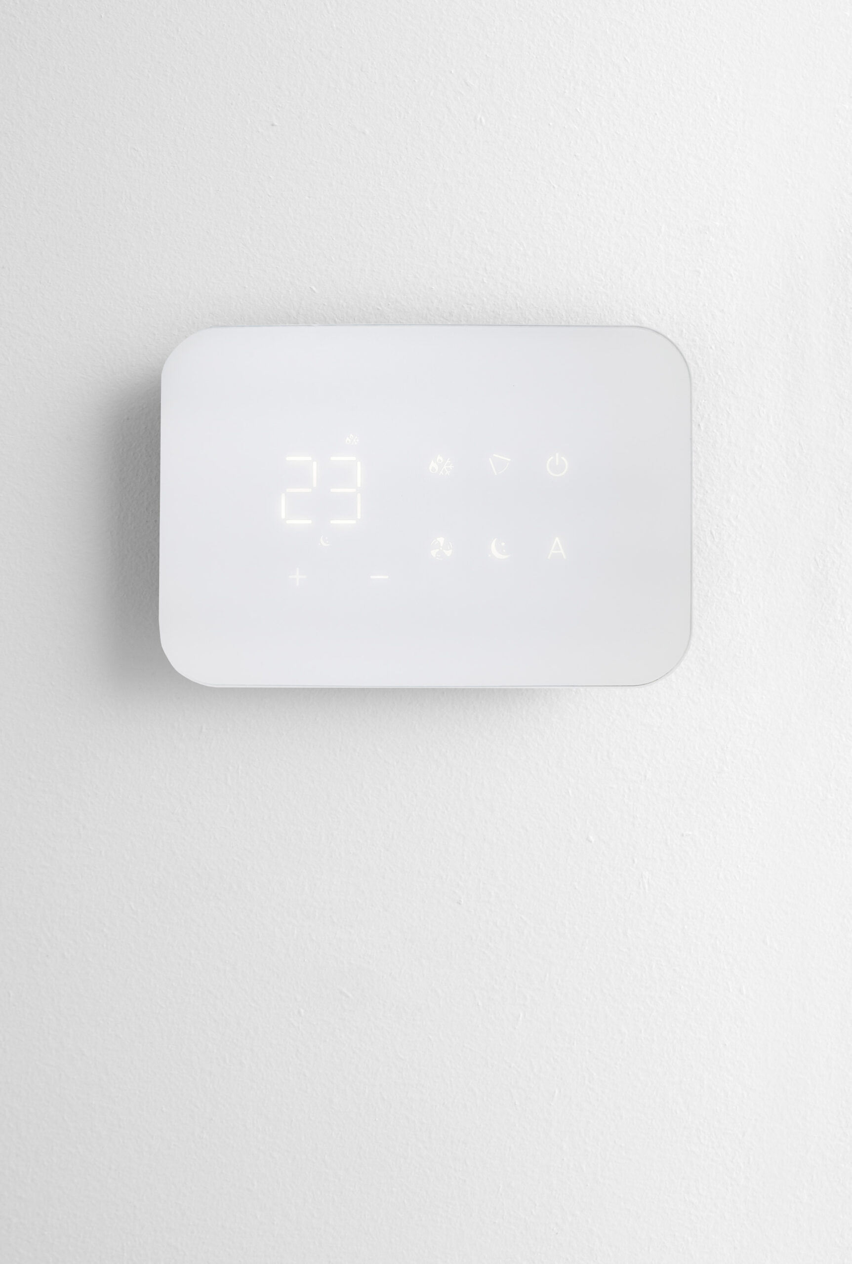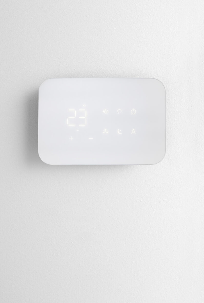 Finally, the system is completed by the INNOVA M7 series wall control, an elegant, ultra-flat and intuitive interface designed to be installed in a standard flush-mounted electrical box. Equipped with an auto-brightness display and highly sensitive touch controls, this interface allows simple and precise management of room comfort.