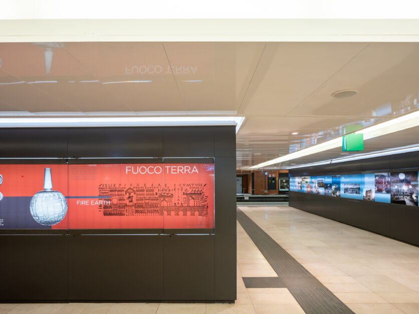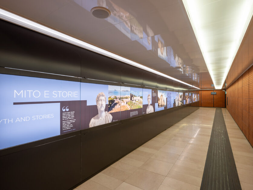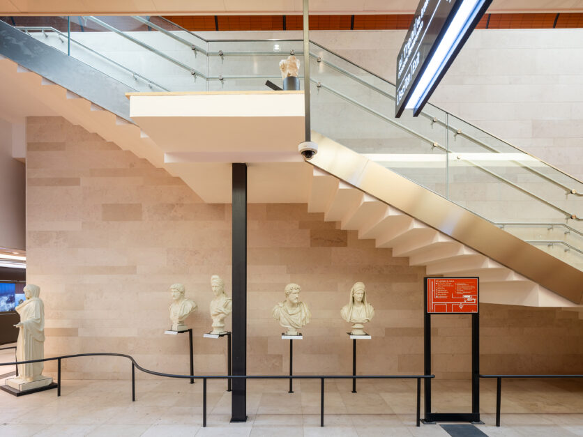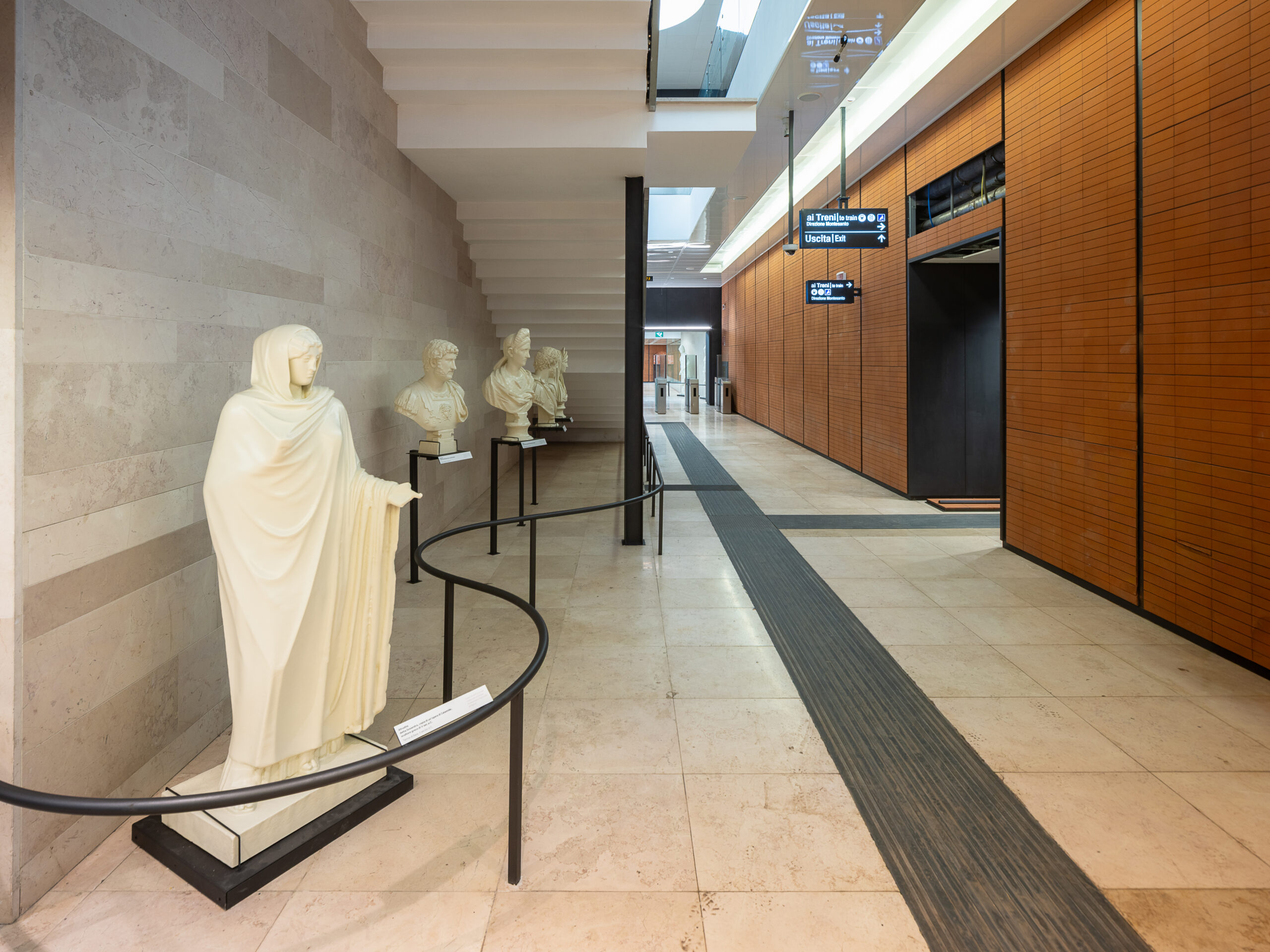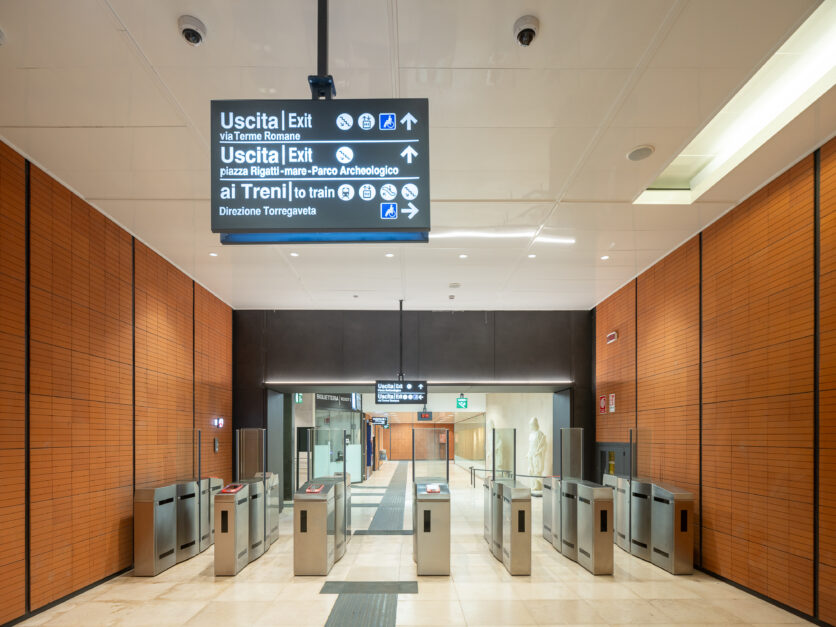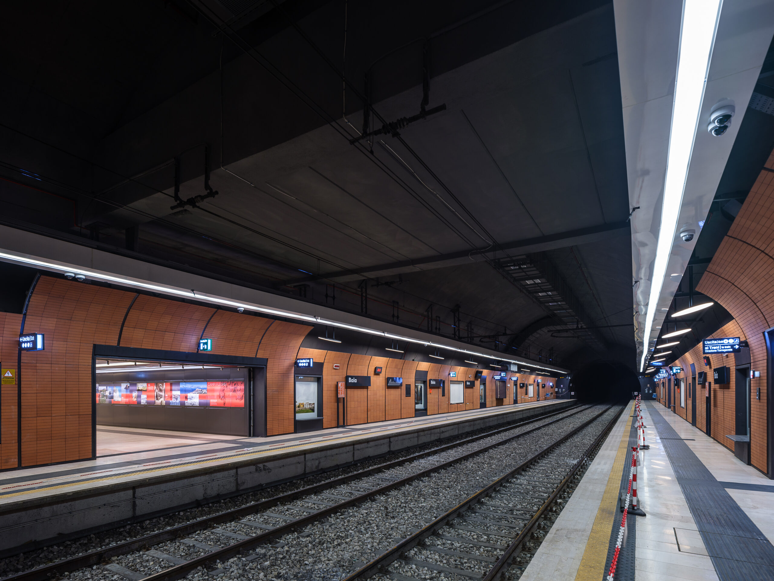 Materiali, luce naturale e articolazione dei volumi contribuiscono a definire un’architettura sobria ma espressiva, capace di dialogare con il territorio flegreo senza sovrapporsi ad esso. La stazione assume così un ruolo di mediazione tra infrastruttura e paesaggio, tra movimento e sosta, tra dimensione funzionale e valore pubblico.