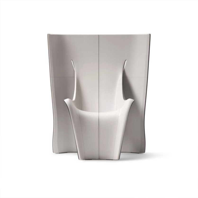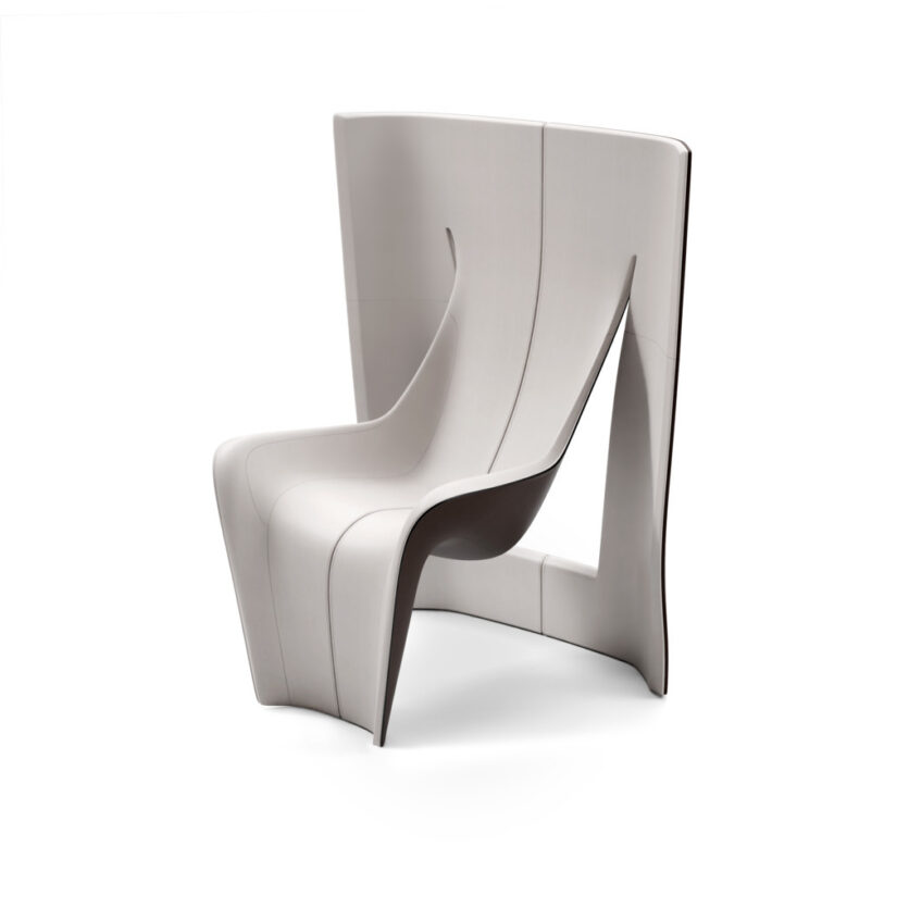 All’interno di questo quadro si inserisce GRAVITY, che si configura non semplicemente come oggetto funzionale, ma come indagine concettuale. La sedia nasce da un processo di tagli precisi applicati a una superficie piana, successivamente modellata attraverso curvature controllate che generano un volume minimale ma espressivo. Ridotta a geometrie essenziali, la forma bilancia presenza strutturale e leggerezza visiva, articolando un dialogo tra peso fisico e percezione di sospensione.