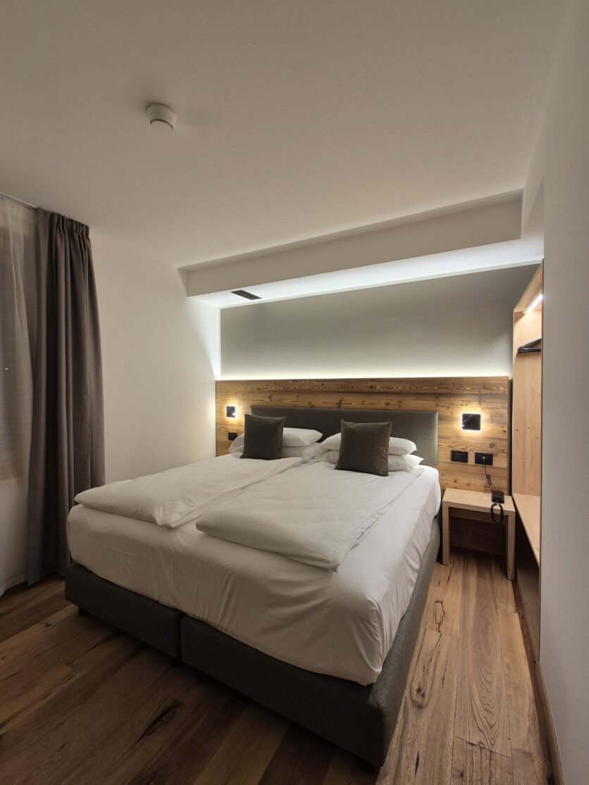 Il vero valore aggiunto di questo hotel è però il sistema di gestione del comfort ambientale, interamente sviluppato con tecnologie INNOVA. L’impianto, che integra pompe di calore STØNE, fancoils OSMO e unità di ventilazione meccanica controllata, assicura un’esperienza di soggiorno all’insegna del benessere, con un impatto ambientale ridotto e una notevole efficienza nei consumi. Come racconta Massimiliano Sedrani, pre-sales manager di INNOVA e protagonista del progetto, la sfida è stata quella di soddisfare le esigenze termiche di un edificio complesso, situato in una zona dal clima rigido e privo di isolamento, limitando al contempo le emissioni e i costi energetici.