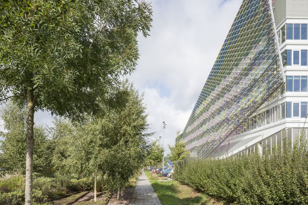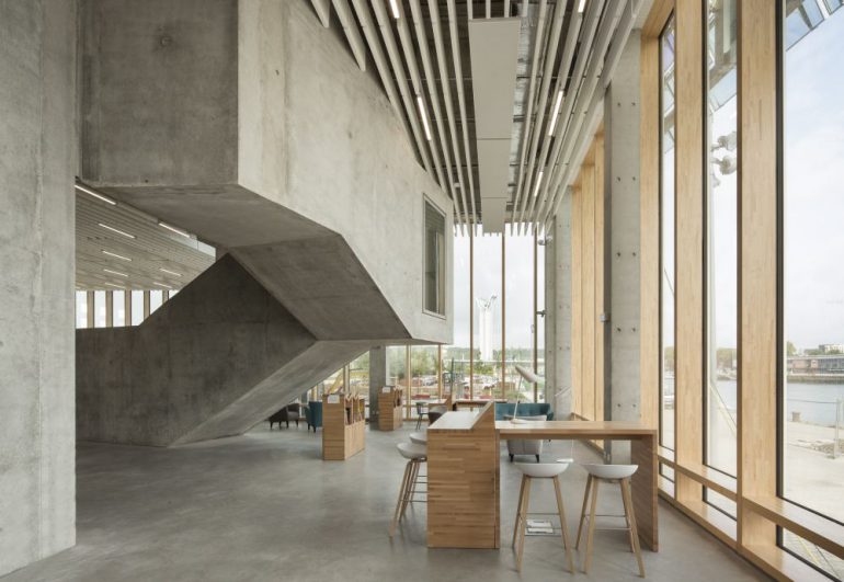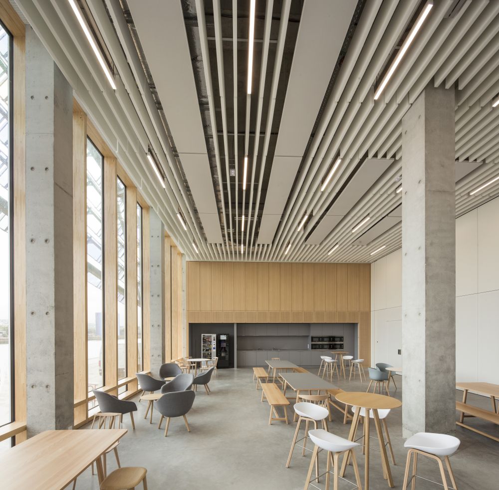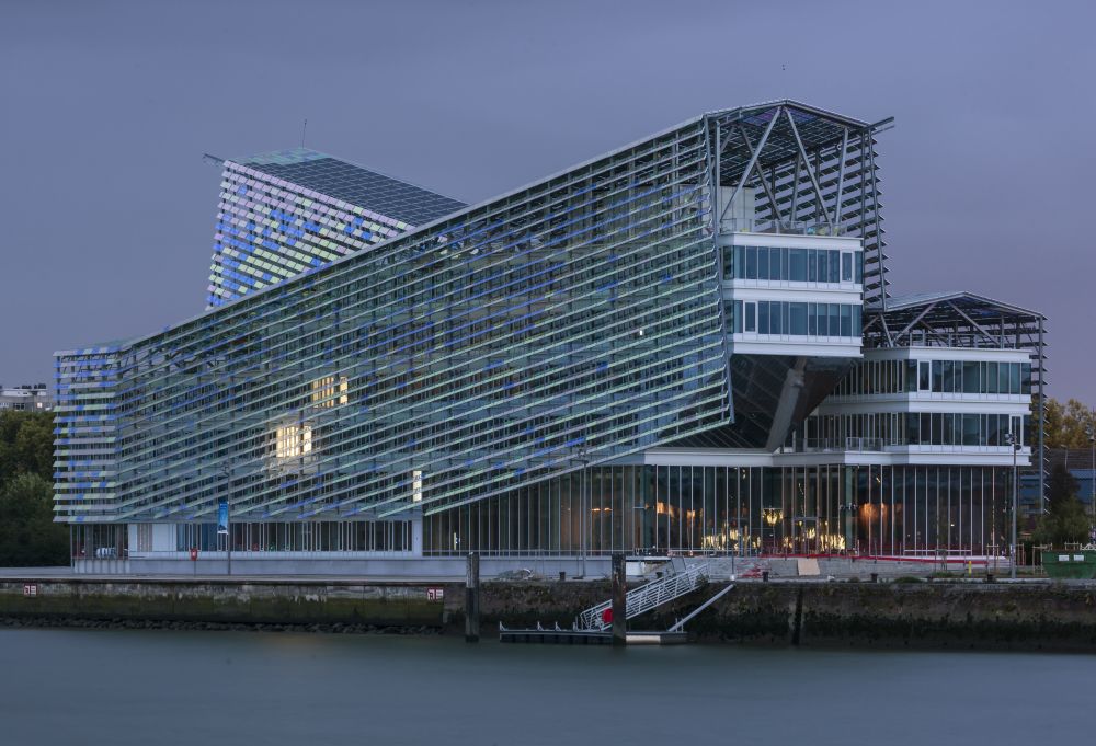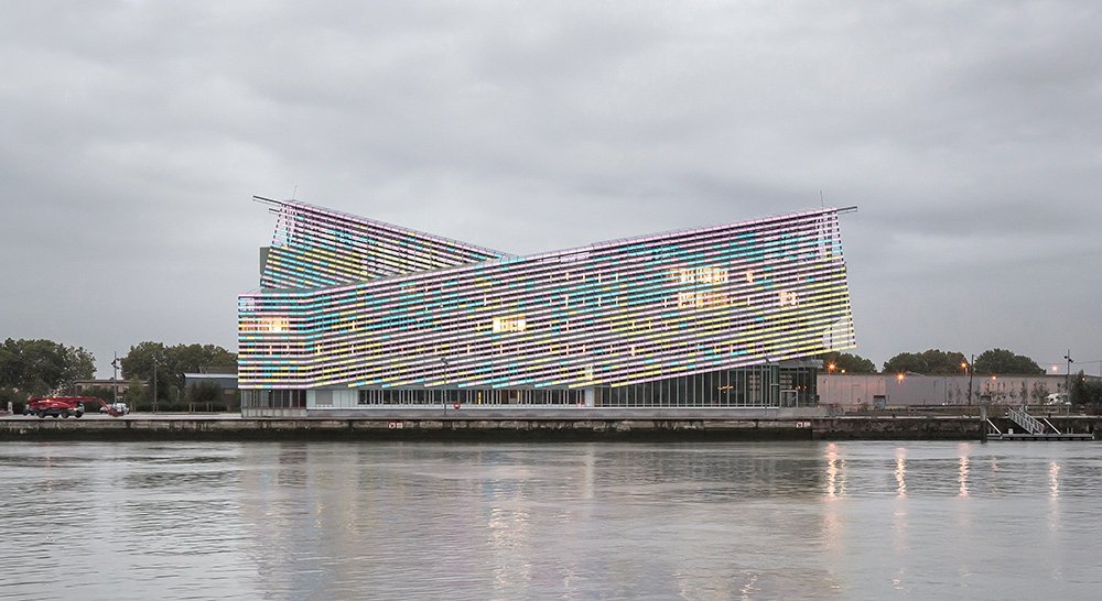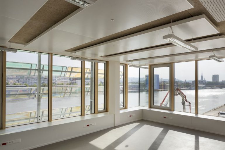 The project appears as an ever-changing object on one bank of the Seine where the reflections of light seem to move the “scales” of the building’s outer shell. Like an aquatic animal, it rests gently on the quay. The play of reflections however is visible only on the outside while the interiors have a natural light that penetrates the spaces in order to deliver a comfortable working environment.
