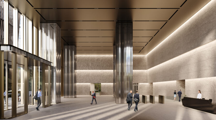 ”Il design della torre possiede un carattere senza tempo, influenzato dai progetti di Mies van der Rohe, ma con un profilo irregolare che la distingue dalle tradizionali silhouette verticali”, afferma l’architetto Patricia Viel.