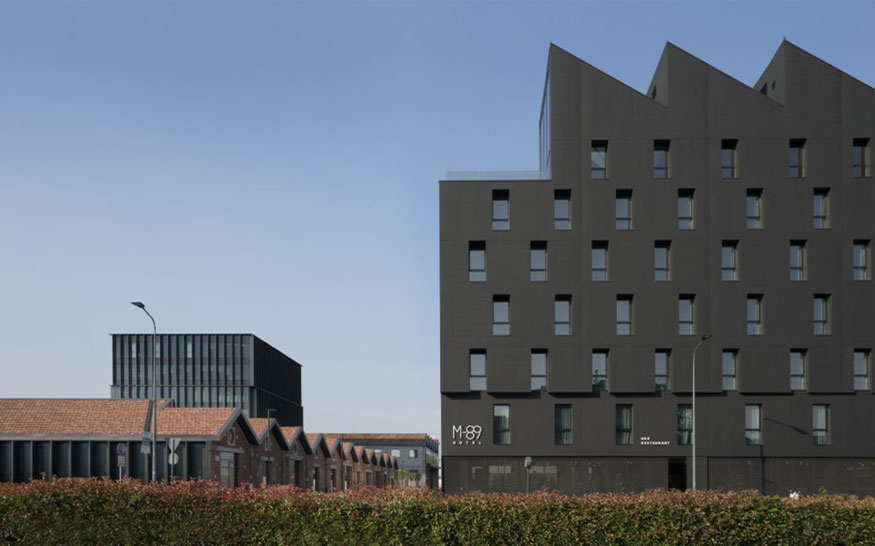 Working on the edge, the ill-defined limits of the suburbs has been a specific theme for the Milanese Piuarch architects for some time and the design for the M89 Hotel testifies to the fascination of a contaminated style of architecture inspired by seemingly distant worlds.