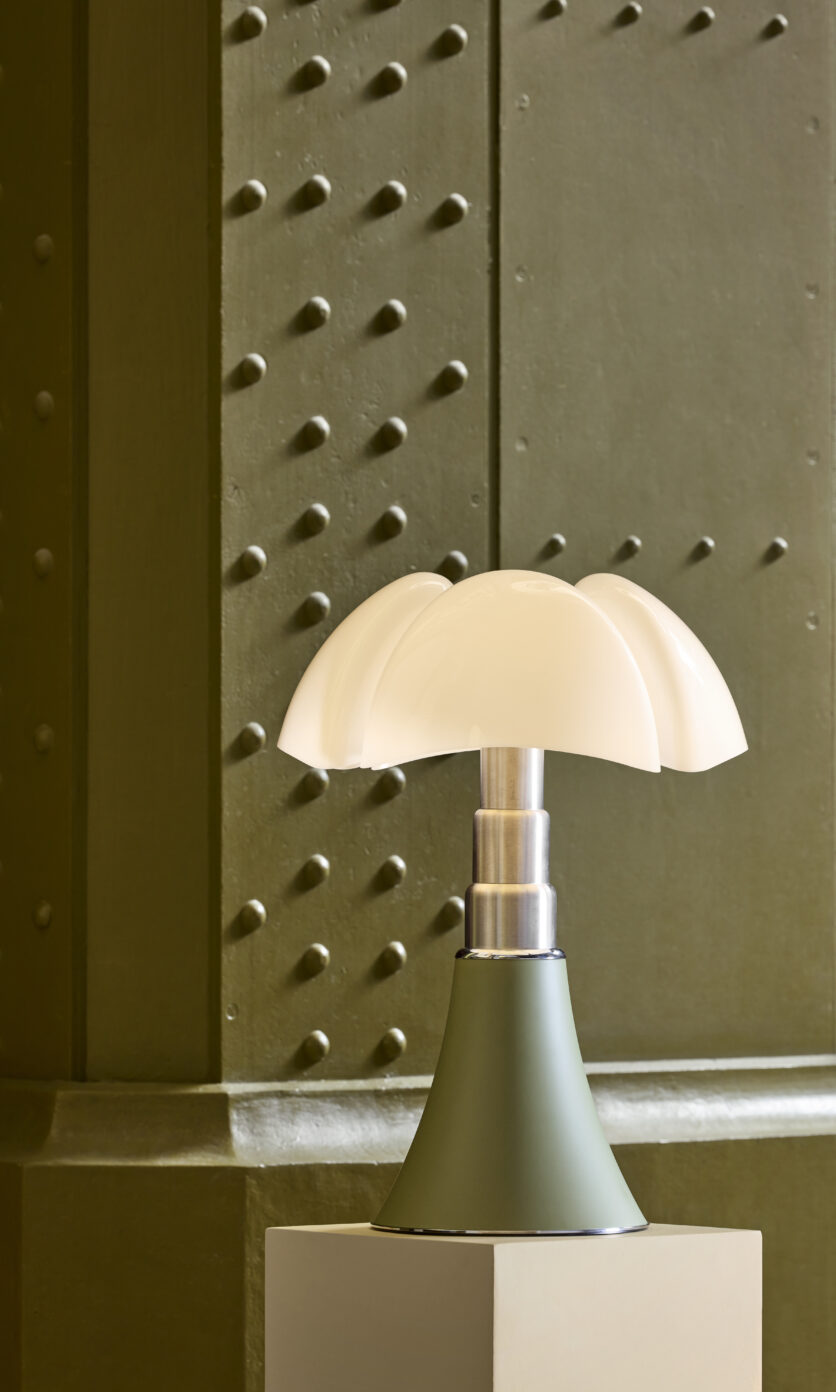 Il legame tra Aulenti e Martinelli Luce affonda invece le radici negli anni Sessanta, quando la designer concepì la Pipistrello per lo showroom Olivetti di Parigi. Prodotta dall’azienda italiana, la lampada si impose nel tempo come un’icona del design, grazie a soluzioni tecniche innovative come il sistema telescopico e l’utilizzo del metacrilato. Inizialmente considerata troppo avanguardistica, dopo alcuni anni conquistò il pubblico, diventando uno dei prodotti più conosciuti del marchio.