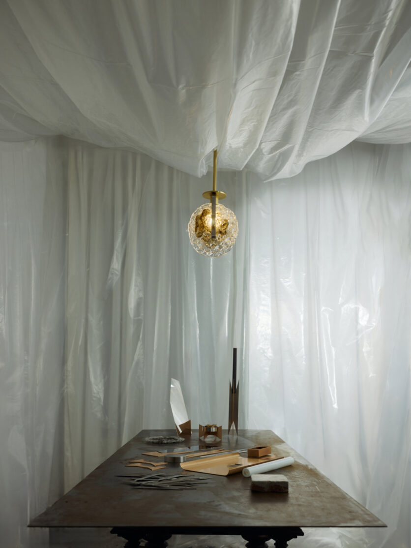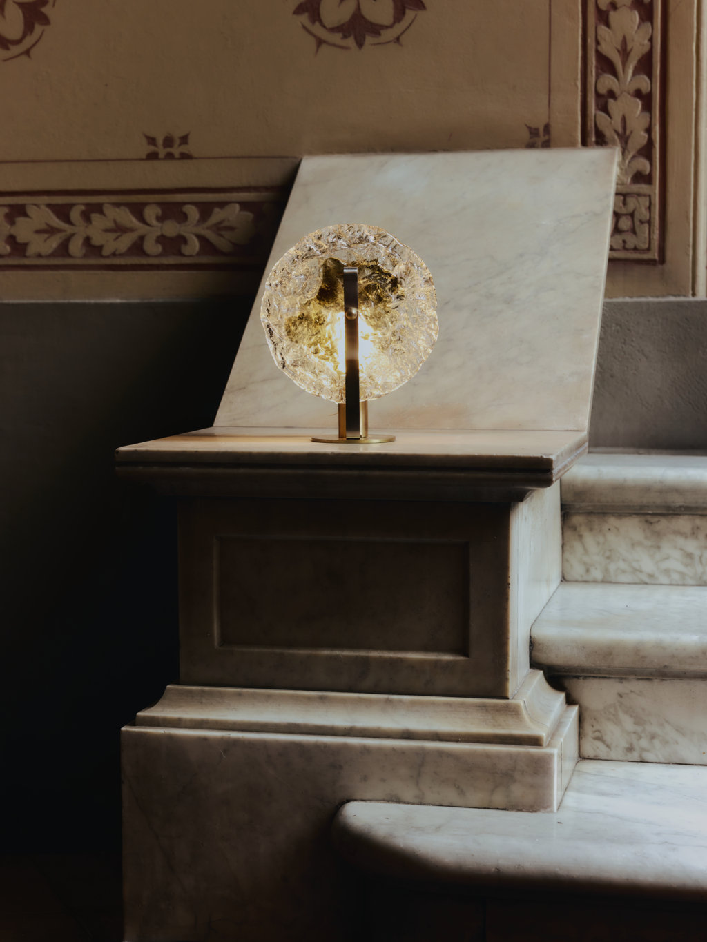 Ispirato al mito di Argo, il gigante dai cento occhi, ARGO nasce dalla riscoperta di una serie di dischi in vetro di Murano, probabilmente appartenenti a un lampadario storico. Questi elementi vengono riportati a nuova vita attraverso una serie limitata di lampade, che spaziano da lampade da tavolo a sospensioni, lampade da terra e applique.