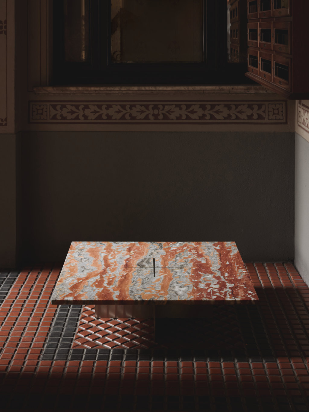 GOLGOTHA è concepito come un’interpretazione fisica di un preciso momento storico e simbolico della tradizione cristiana. Il tavolo è volutamente basso, costringendo l’utente a piegarsi per avvicinarsi e utilizzarlo; si tratta di un vero e proprio gesto di rispetto, che richiama l’atto di inchinarsi di fronte a un luogo sacro. Al centro del tavolo, la croce e la pietra rimandano al sepolcro di Cristo, da cui il nome.