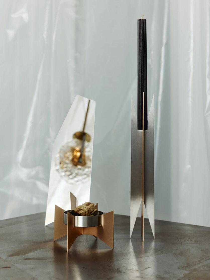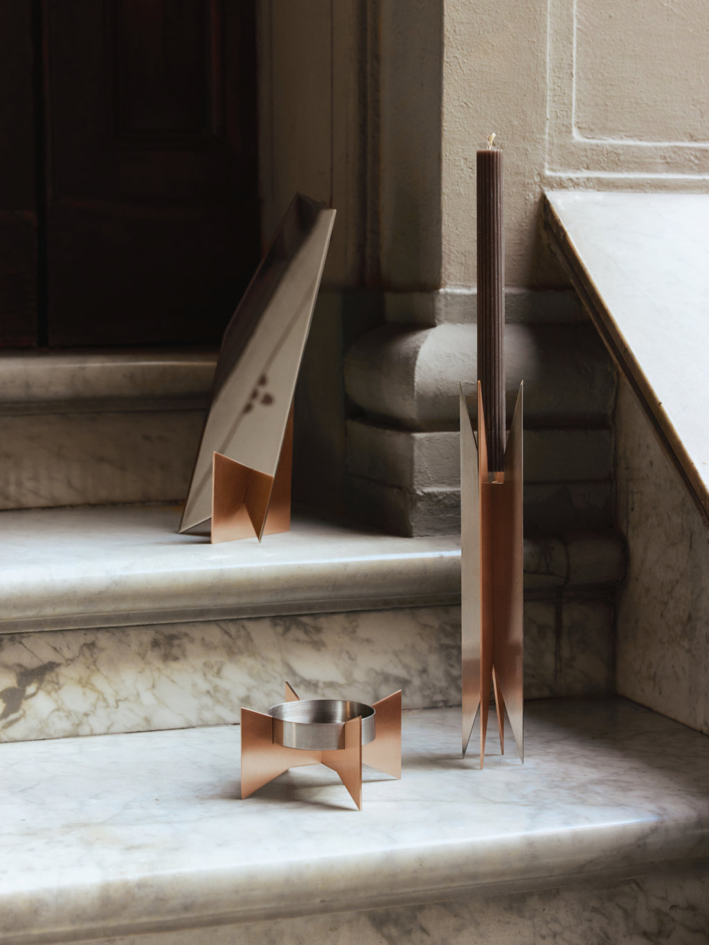 INNESTO è il termine italiano che indica la tecnica botanica e chirurgica attraverso cui due elementi distinti vengono uniti per crescere come uno solo. Tradotta nel design, questa idea si concretizza in oggetti composti da elementi metallici bidimensionali progettati per incastrarsi con precisione, dando forma a strutture tridimensionali e funzionali.