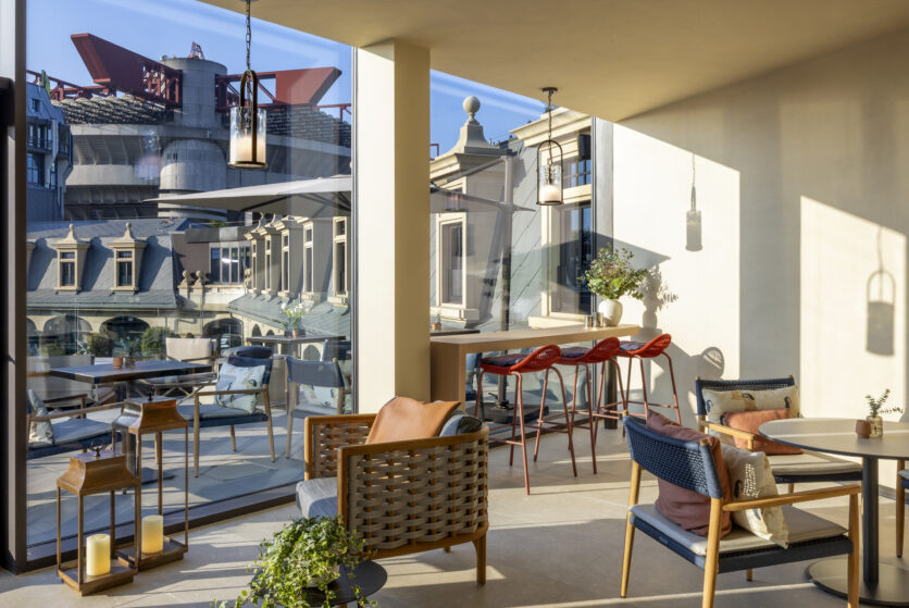 L’illuminazione gioca un ruolo chiave nella costruzione dell’atmosfera: luci dinamiche nei corridoi simulano i riflessi dell’acqua sulle superfici, mentre lanterne su misura reinterpretano l’immaginario Liberty, generando una sequenza di spazi sospesi tra memoria e contemporaneità.