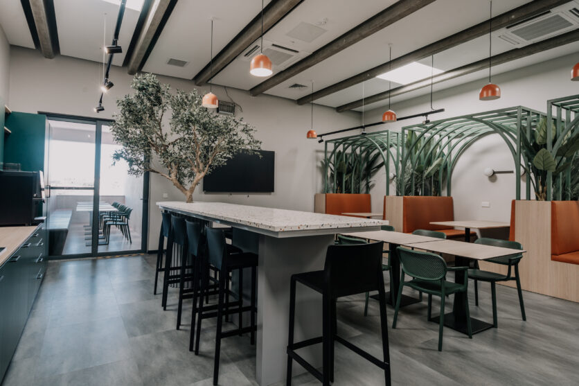 La strategia progettuale si basa sull’attribuzione di palette cromatiche differenti ai diversi reparti, creando atmosfere riconoscibili pur mantenendo un’identità complessiva coerente. Tonalità di verde, blu, arancione e giallo – colori associati al mondo visivo di Nestlé – definiscono le diverse aree dell’ufficio e dialogano con materiali naturali come il legno e il cemento grezzo. L’insieme costruisce una palette ispirata ai colori e alle texture del paesaggio maltese.