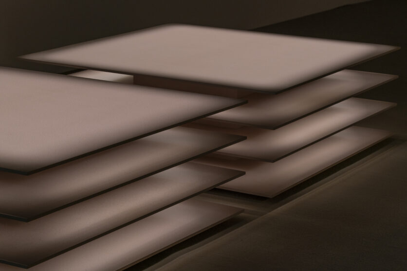 The system takes full shape through integration with HYLEtech panels, the innovative high-tech aluminium material developed by Luce5, which combines lightness, strength and sustainability in just one centimetre of thickness. Free of visible cables and screws, completely recyclable and reusable, HYLEtech allows each individual panel to be electrified at any point on the surface, redefining the boundaries of architectural design.