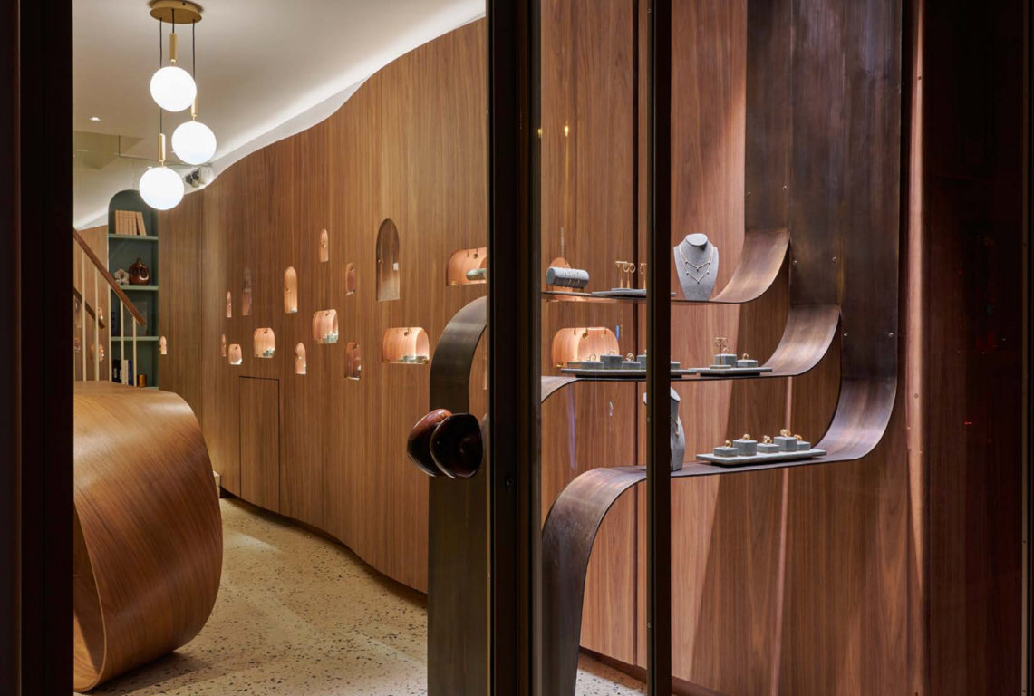 A boutique as a landscape made of touch, light and memory.