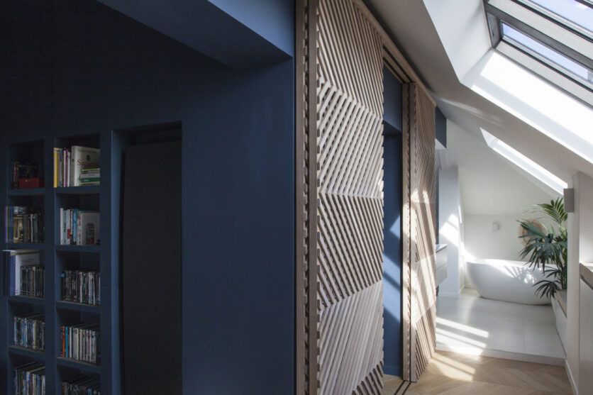 Perched atop a luxury residential building in Neuilly-sur-Seine, a 310 m² duplex loft, conceived by ABACO studio, unfolds as a luminous, open landscape overlooking La Défense. Large French windows and a generous terrace expand the interior towards the horizon. From the outset, the project rejects the idea of a fixed and static layout. Instead it develops progressively through a sequence of thresholds, level changes, and visual tensions. ABACO explores domestic space as a field of possibilities, where architecture becomes a tool for transformation, a device of choice rather than a prescription. Light, movement, and perception are the primary design drivers, shaping an experience that evolves throughout the day. From the idea that a minimal gesture can generate multiple realities, custom sliding elements, integrated into architectural volumes, allow spaces to open, overlap, or disappear, making privacy and continuity adjustable rather than rigidly imposed. A double-height volume, at the heart of the apartment, acts as a spatial hinge, permitting daily life to expand, contract, and circulate around it. The home becomes a flexible narrative, reversible, adaptable and shaped by everyday gestures rather than fixed boundaries.