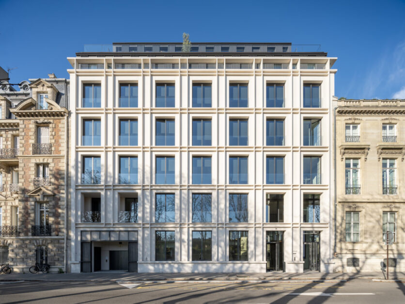 Located along the Seine in Paris’s 8th arrondissement, the 38 Cours Albert Iᵉʳ project, realized by Wilmotte & Associés, embodies a refined dialogue between historical heritage and contemporary architecture. Built on the site of a former hôtel particulier, the new office building reinterprets classic Parisian codes with a modern sensibility, respectfully integrating into the urban context while simultaneously establishing itself as a visual landmark. The façade draws inspiration from Haussmannian rhythms through pilasters, cornices, and generous openings, yet is executed using highly innovative techniques. The use of Portuguese limestone on lightweight honeycomb panels creates a continuous, monolithic appearance, while ensuring precision, durability, and structural efficiency. Inside, the same principles of clarity, elegance, and generosity define the spatial experience. Natural light, noble materials, and carefully designed circulation spaces shape a calm and welcoming atmosphere, both relaxing and convivial. The building follows a flexible office logic, allowing adaptable layouts, supported by shared amenities, meeting areas, and landscaped terraces. Nature plays a central role, from interior gardens to panoramic rooftop terraces overlooking Paris. Strongly committed to sustainability, the project integrates bio-based materials, photovoltaic panels, and high-level environmental certifications. More than just an office building, it proposes a new vision of workspaces, where architectural identity, environmental responsibility, and user well-being coexist seamlessly.