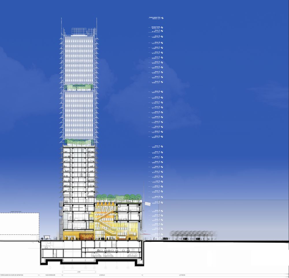 Starting from April, what will be the largest court complex in Europe mirrors the proportions of Haussmann’s Paris in the layout of the main body onto which are grafted three upper blocks, similar to sails connected by a thin central mast complete with panoramic elevators.