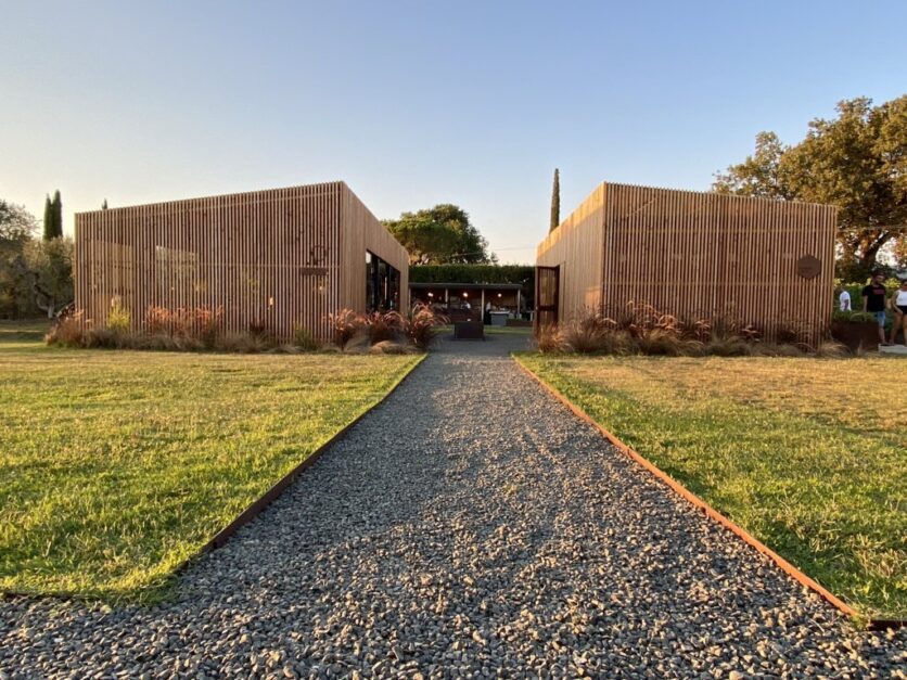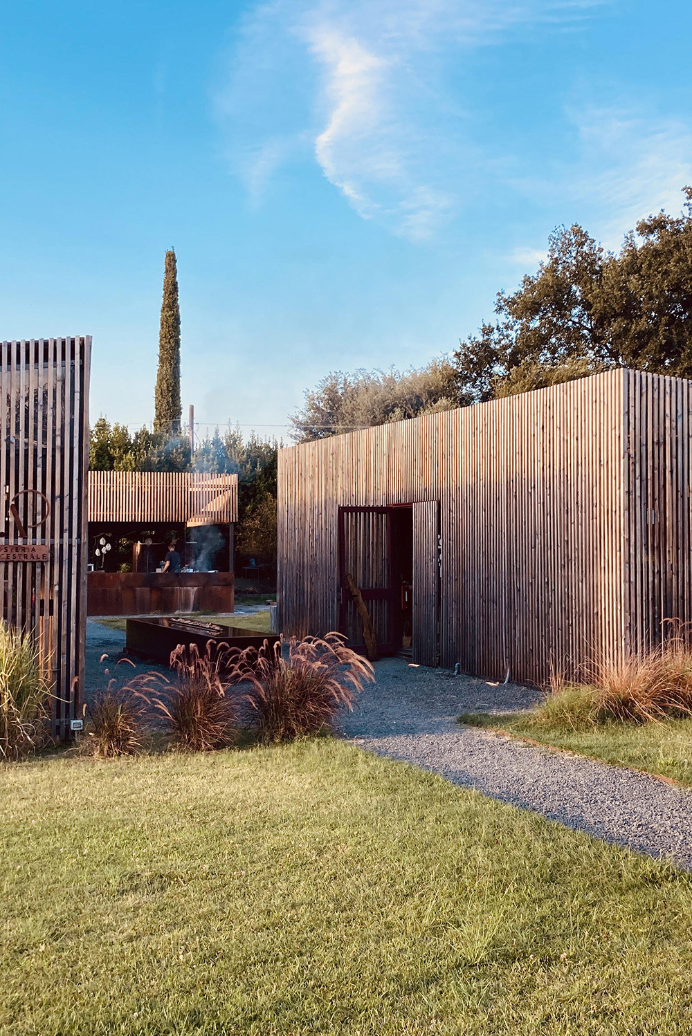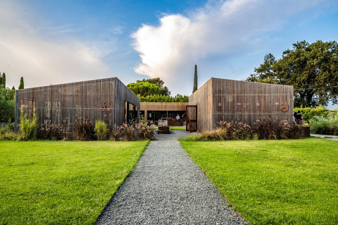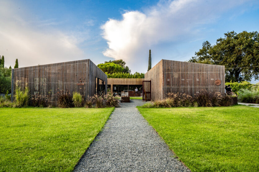 After an initial phase marked by a DIY setup, the couple entrusted the Florentine practice q-bic with reimagining the Podere’s spaces through an architectural language designed to harmonize with the surrounding landscape. The intervention focused on the two culinary identities of the estate: Bolgheri Green, an informal bistro and tapas bar, and the new Osteria Ancestrale, a gourmet vegetarian restaurant.