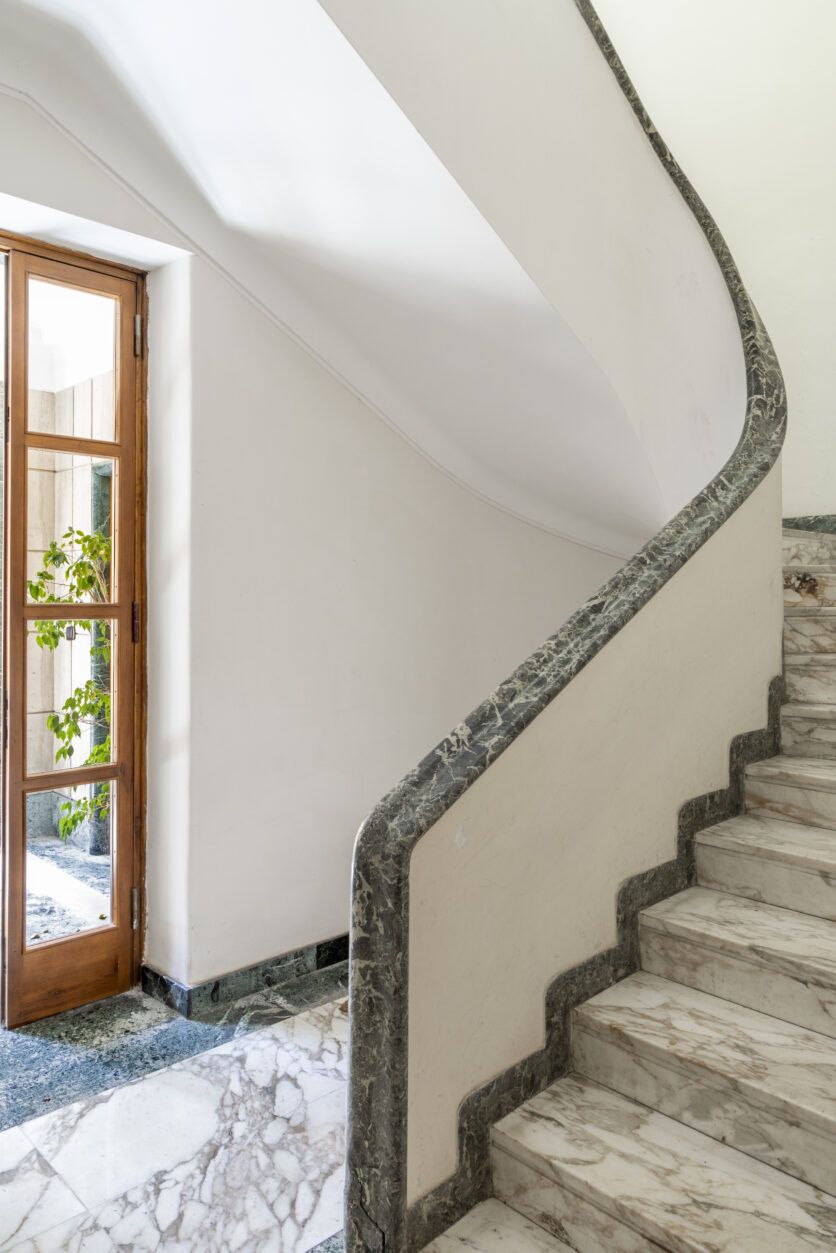 The legacy of 1930s architecture is reinterpreted through a dialogue between curved forms and strict geometries, between bespoke elements and iconic pieces. The result evokes the atmosphere of a vibrant cinematic set – refined, expressive, and full of character.