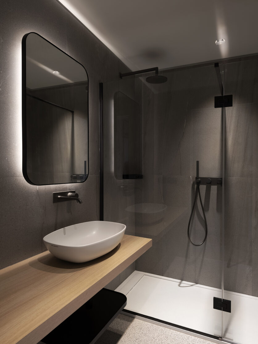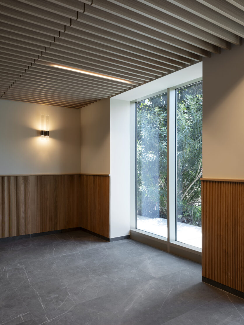 Particolare attenzione è rivolta alla materialità: superfici e dettagli sono pensati per esprimere una dimensione tattile e una durabilità nel tempo. Il progetto evita soluzioni iconiche o eccessivamente espressive, scegliendo invece una grammatica sobria, quasi silenziosa, che affida alla precisione esecutiva e alla qualità costruttiva il proprio valore architettonico.