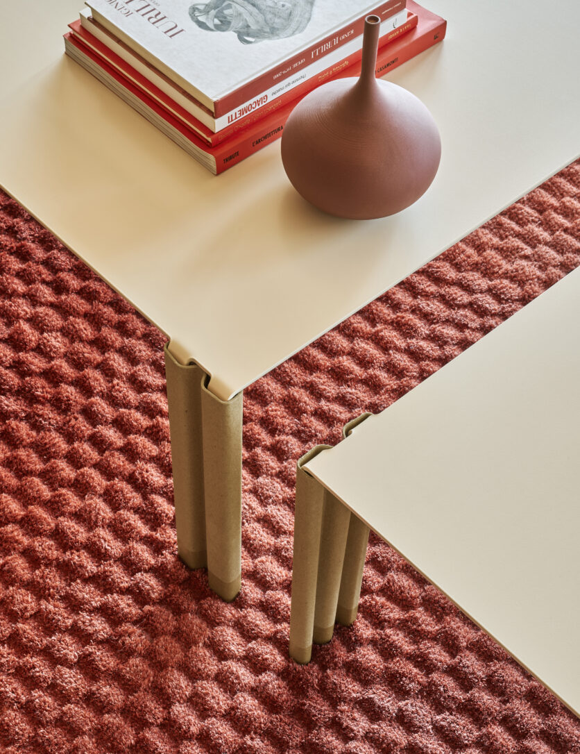 InBallo, designed by Odo Fioravanti, is a system of coffee tables with legs made of cardboard derived from pure cellulose and a painted sheet metal top, available in different colours. Lightweight and sustainable, they require no tools for assembly. The project stems from a chance discovery: a technology for producing cardboard profiles used to protect household appliances. From this insight, Fioravanti transforms a humble, technical material into an elegant structural element, with moulded legs reminiscent of classical ancient columns. The tables are shipped in compact packaging and can be easily assembled by the end user — a concrete example of circular, accessible and conscious design.