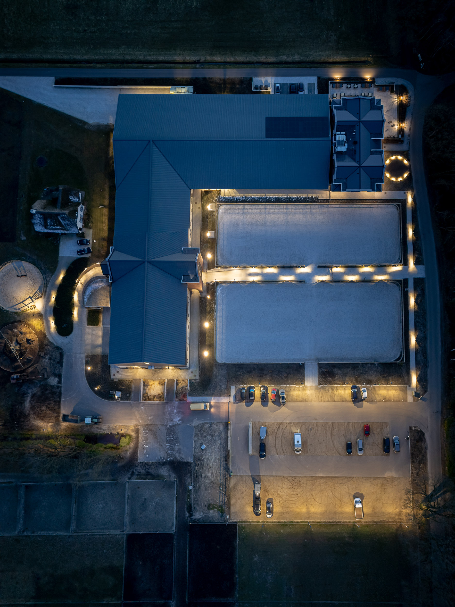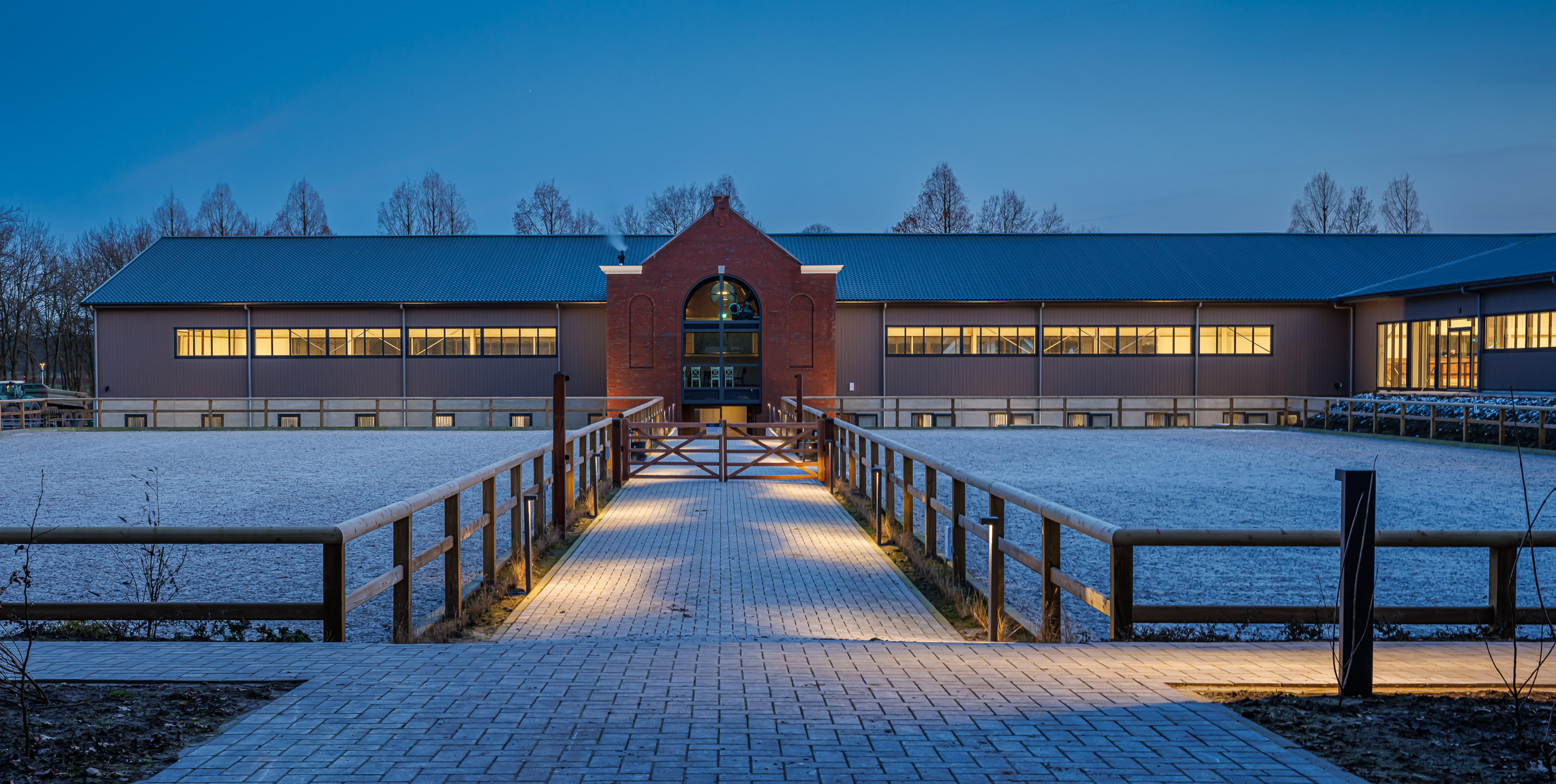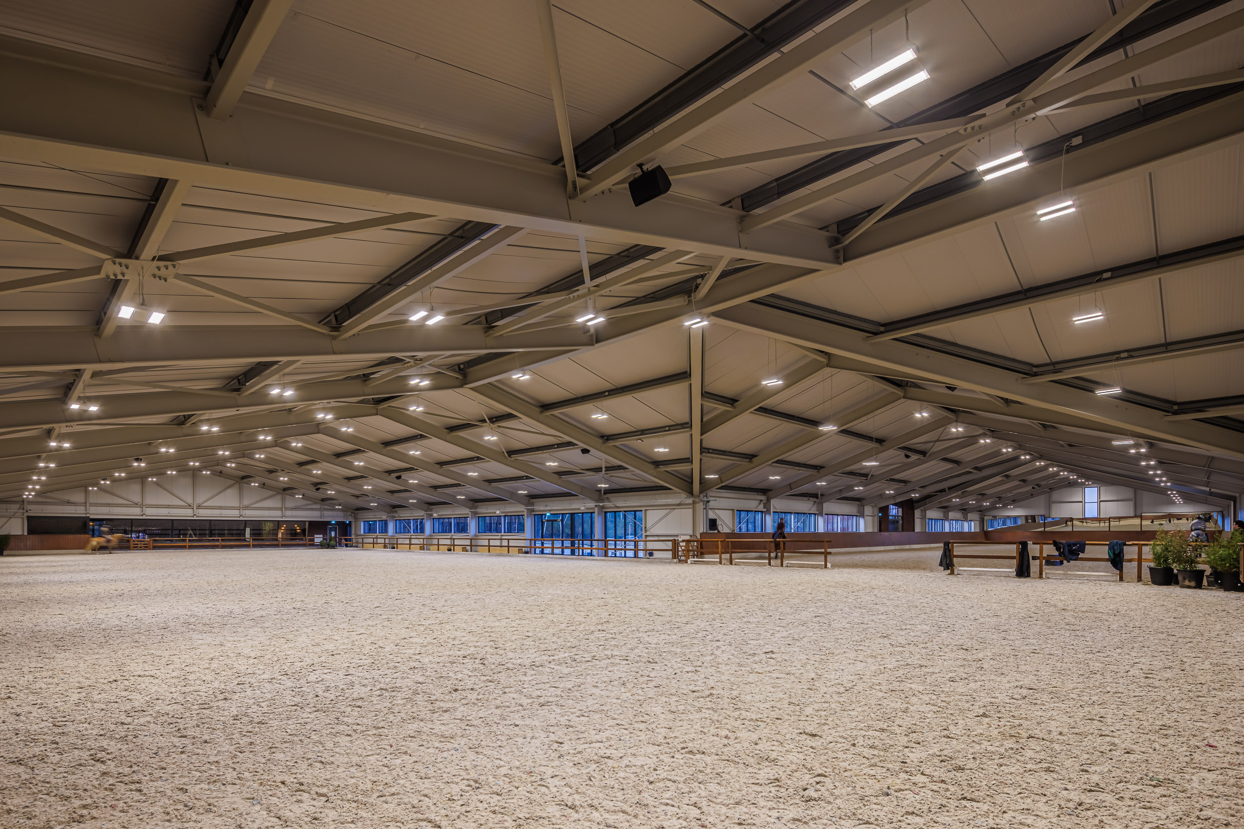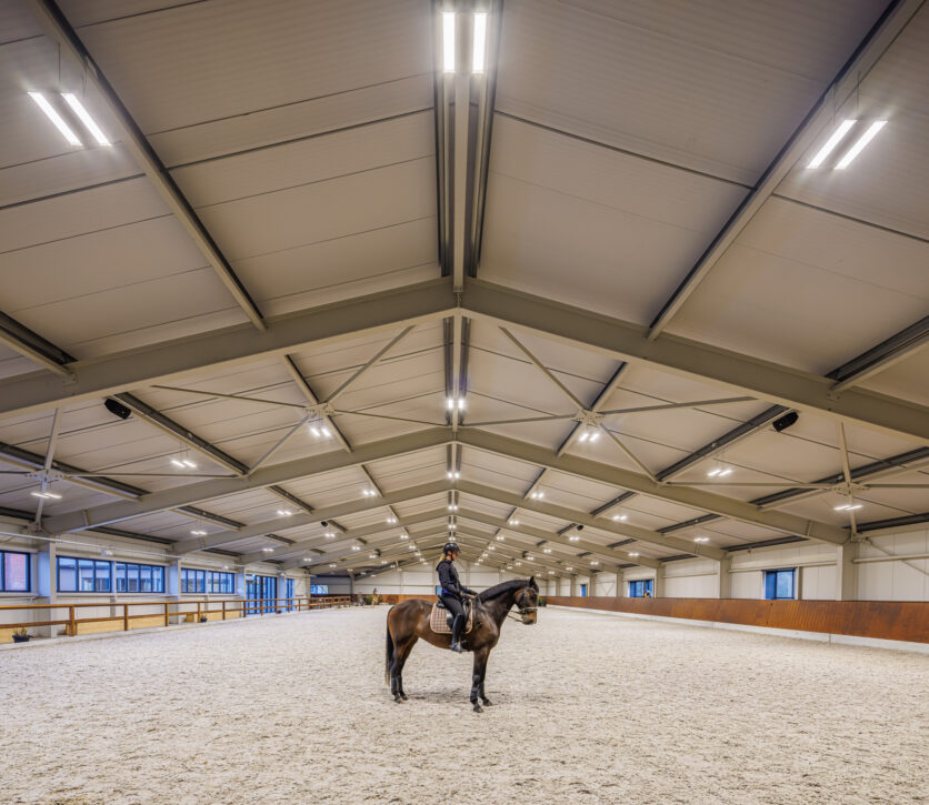 Immerso nella quiete della campagna olandese, il maneggio WolfsHoeve di Huijbergen si distingue come un centro ippico di riferimento, dove sport, allevamento e ospitalità convivono in perfetto equilibrio. La struttura, moderna e perfettamente integrata nel paesaggio, ospita un’arena per competizioni e allenamenti, scuderie per il ricovero dei cavalli, spazi abitativi per cavalieri e una brasserie panoramica, creando un ambiente funzionale e accogliente in ogni dettaglio.
